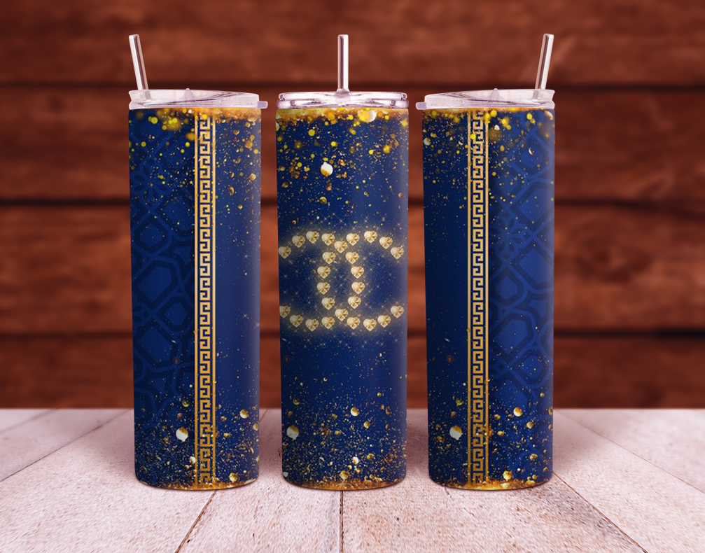 Blue and Gold Blue 20oz and 30oz Sublimation Tumbler Wrap PNG