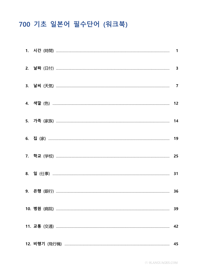 700 기초 일본어 필수단어 (워크북) [PDF]