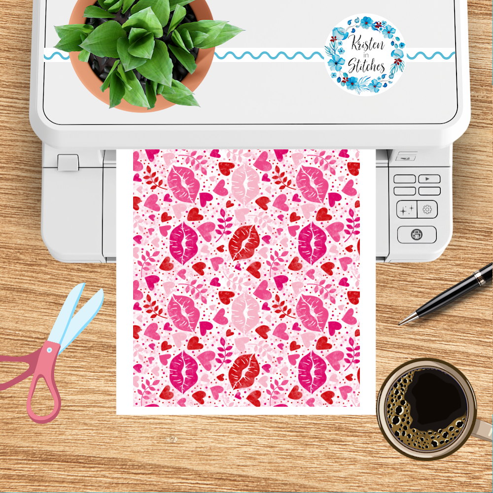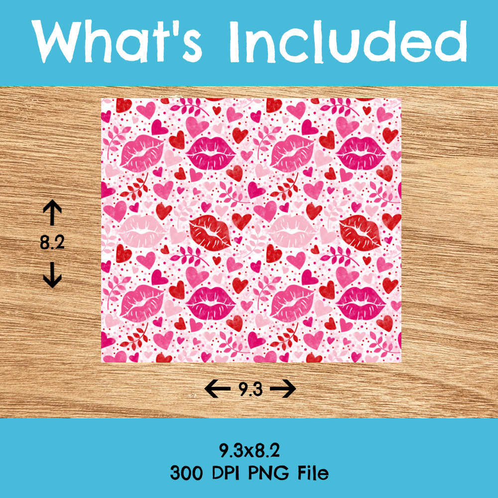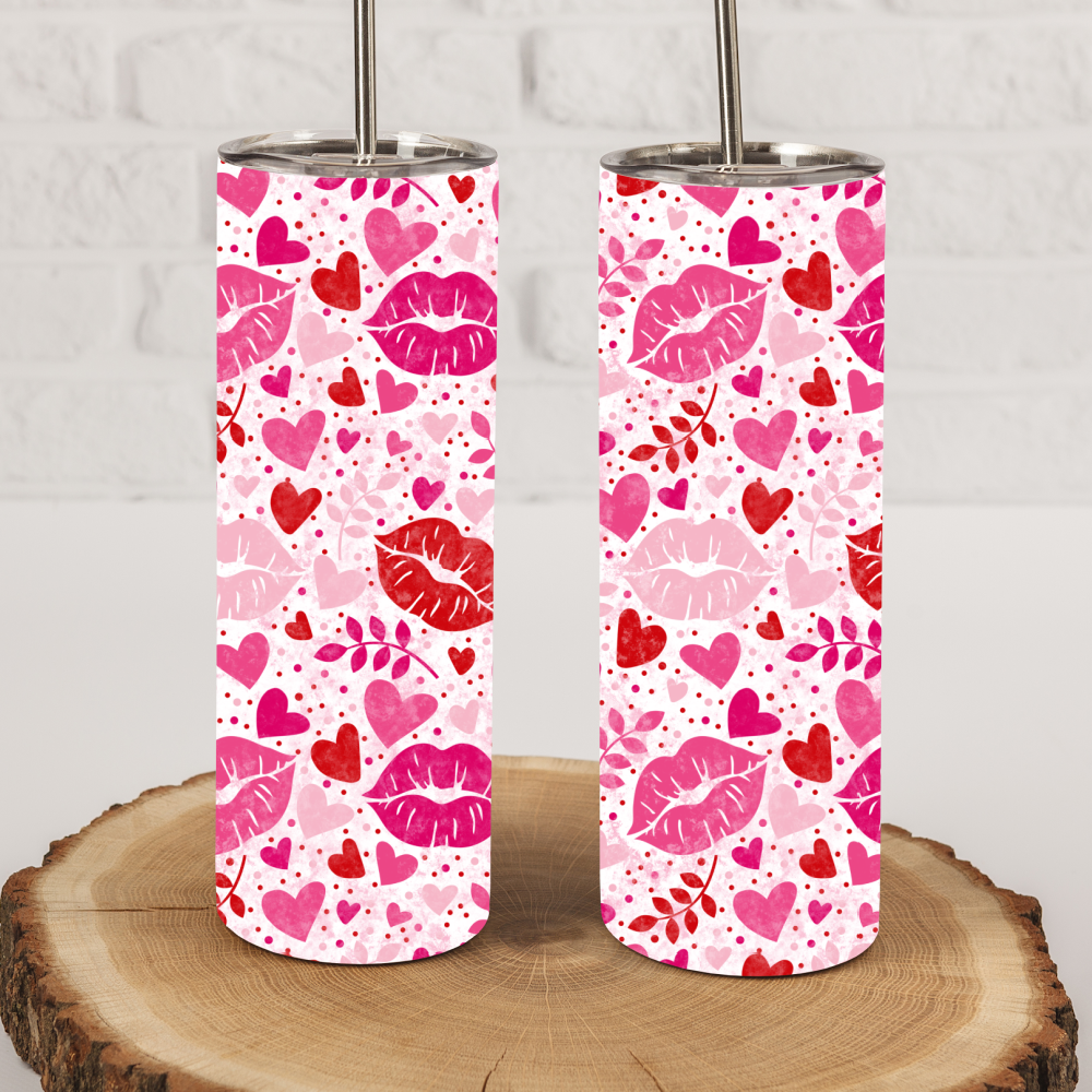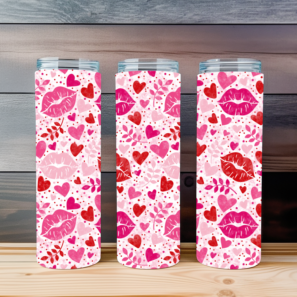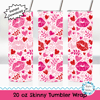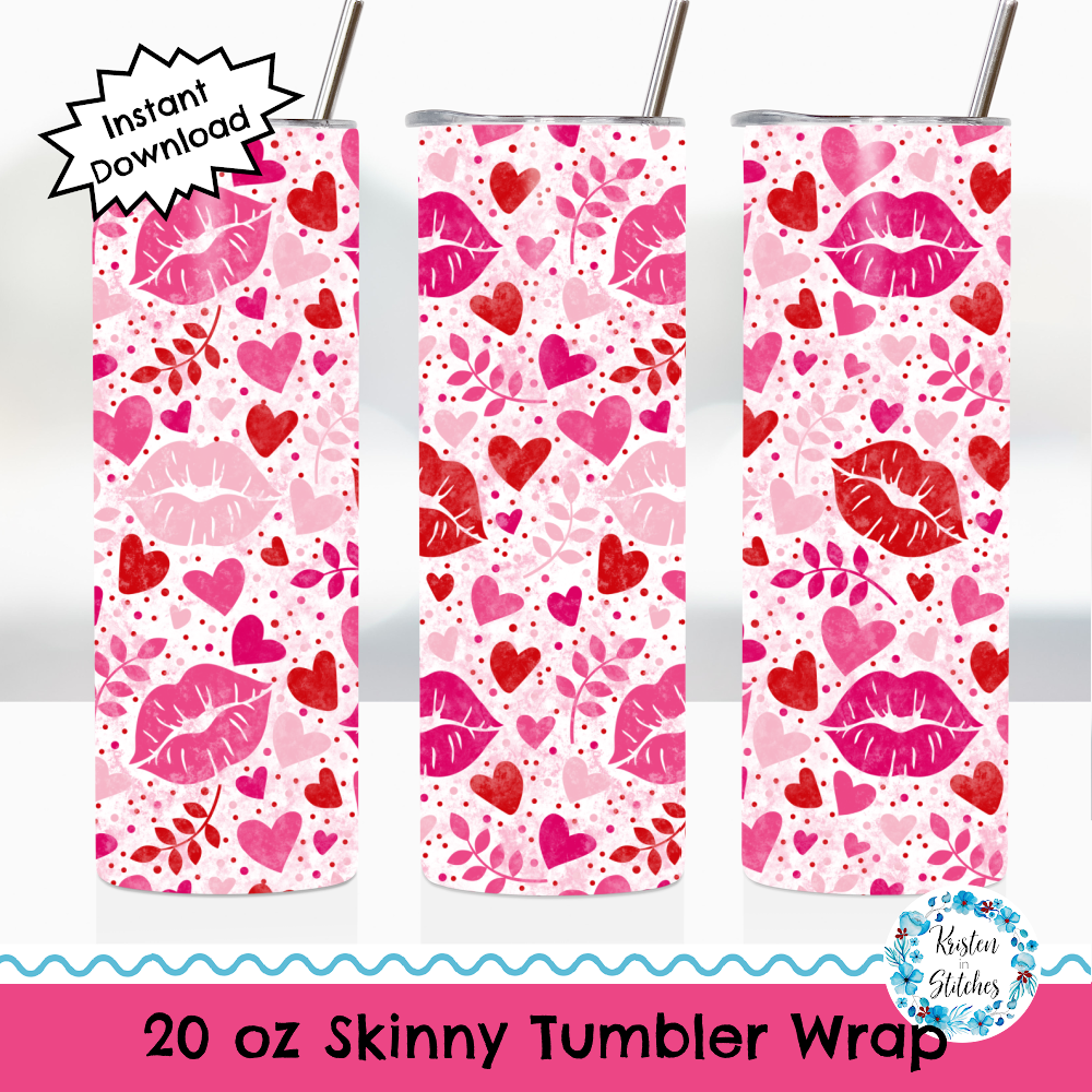 Skinny Tumbler Wrap, 20 oz, Printable Sublimation, Valentine Hearts and Kisses