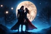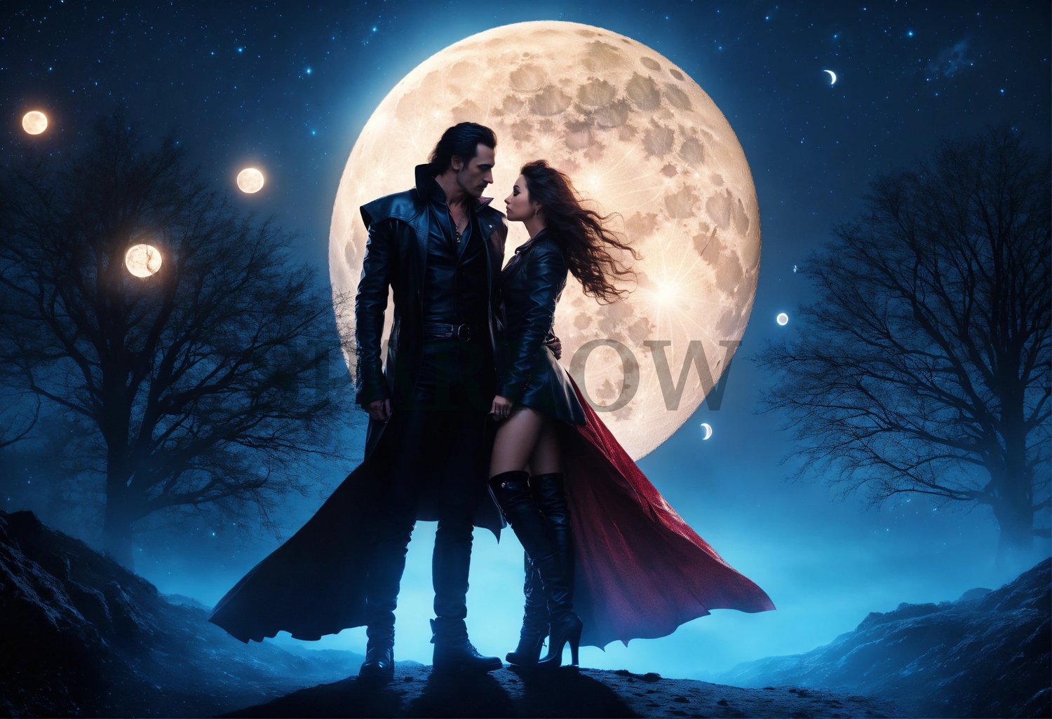 Image of a couple embracing in the forest at night with a full moon. : Paranormal romance, Love and supernatural, Fantasy couple, Ghostly love, Mystic romance, Enchanted lovers, Otherworldly passion, Supernatural relationship, Magical embrace, Eerie romance, Ethereal couple, Haunting love, Dark fantasy love, Mysterious connection, Ghostly soulmates, Fantasy love story, Paranormal passion, Enigmatic lovers, Mystic bonding, Spooky romance, Stock image, High-resolution, Fantasy background, Romantic scene, Love concept, Storytelling, Digital art, AI, Creative design, Surreal atmosphere, Dreamy backdrop, Magical elements, Beautiful couple, Artistic composition, Commercial use, Atmospheric lighting, Mystical setting, Relationship concept, Emotive characters, Fictional love, Editorial use, Advertising, Marketing, Social media, Website design, Blog post, Article illustration, Book cover, Magazine layout, Poster design, Brochure, Presentation, E-book, Print material, Digital publication, Educational materials, Background image, Wallpaper, Conceptual art, Storytelling Wolf shifter couple, Full moon background, Romantic moonlit scene, Alpha wolf pack, Fated mates embrace, Shapeshifter love, Enchanted forest setting, Moonlit meadow, Mystical bond, Howling wolves, Silhouetted trees, Nighttime romance, Alpha male and female, Lycanthropy fantasy, Supernatural passion, Mystic atmosphere, Moonlit wilderness, Fierce connection imagery, Romantic wolf eyes, Moonlit path, young adult romance, YA, PNR, paranormal romance, vampire, vampire hunter, Little Red Riding Hood, serialized online fiction cover image, Radish, Dreame, GoodNovel, iReader, Vella, SWAG, book, author, writer, blogger, creator
