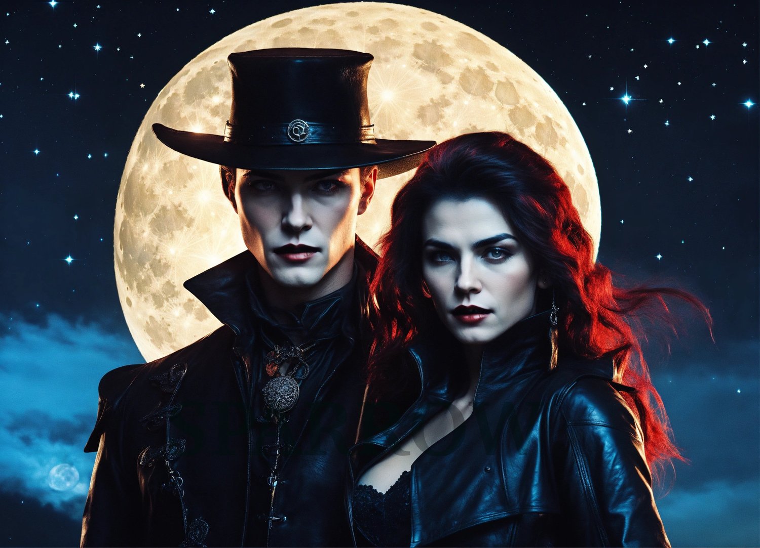 Keywords include: Paranormal romance, Love and supernatural, Fantasy couple, Ghostly love, Mystic romance, Enchanted lovers, Otherworldly passion, Supernatural relationship, Magical embrace, Eerie romance, Ethereal couple, Haunting love, Dark fantasy love, Mysterious connection, Ghostly soulmates, Fantasy love story, Paranormal passion, Enigmatic lovers, Mystic bonding, Spooky romance, Stock image, High-resolution, Fantasy background, Romantic scene, Love concept, Storytelling, Digital art, AI, Creative design, Surreal atmosphere, Dreamy backdrop, Magical elements, Beautiful couple, Artistic composition, Commercial use, Atmospheric lighting, Mystical setting, Relationship concept, Emotive characters, Fictional love, Editorial use, Advertising, Marketing, Social media, Website design, Blog post, Article illustration, Book cover, Magazine layout, Poster design, Brochure, Presentation, E-book, Print material, Digital publication, Educational materials, Background image, Wallpaper, Conceptual art, Storytelling Wolf shifter couple, Full moon background, Romantic moonlit scene, Alpha wolf pack, Fated mates embrace, Shapeshifter love, Enchanted forest setting, Moonlit meadow, Mystical bond, Howling wolves, Silhouetted trees, Nighttime romance, Alpha male and female, Lycanthropy fantasy, Supernatural passion, Mystic atmosphere, Moonlit wilderness, Fierce connection imagery, Romantic wolf eyes, Moonlit path, young adult romance, YA, PNR, paranormal romance, vampire, vampire hunter, Little Red Riding Hood, serialized online fiction cover image, Radish, Dreame, GoodNovel, iReader, Vella, SWAG, book, author, writer, blogger, creator