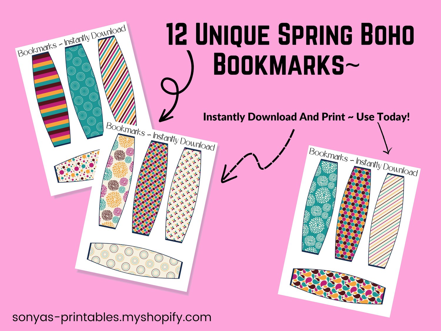 12 Printable Spring Boho Bookmarks | Spring Bookmarks | Boho Bookmarks | Colorful Page Holders | Instantly Download