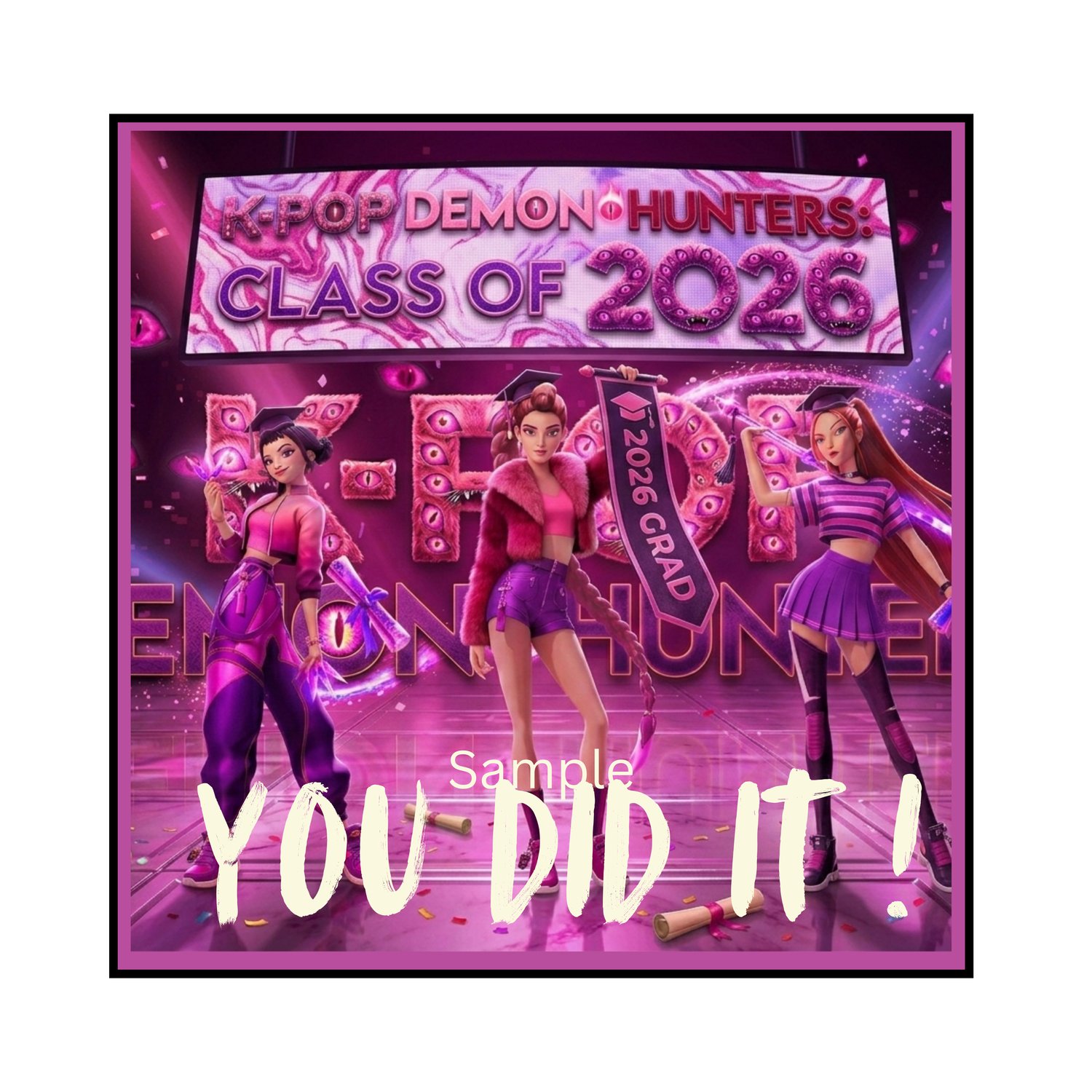 Celebrate your graduation in bold, fun style with this K-Pop Demon Hunters-inspired kids graduation cap design!