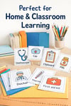 - Each card features clear, kid-friendly illustrations of tools and objects