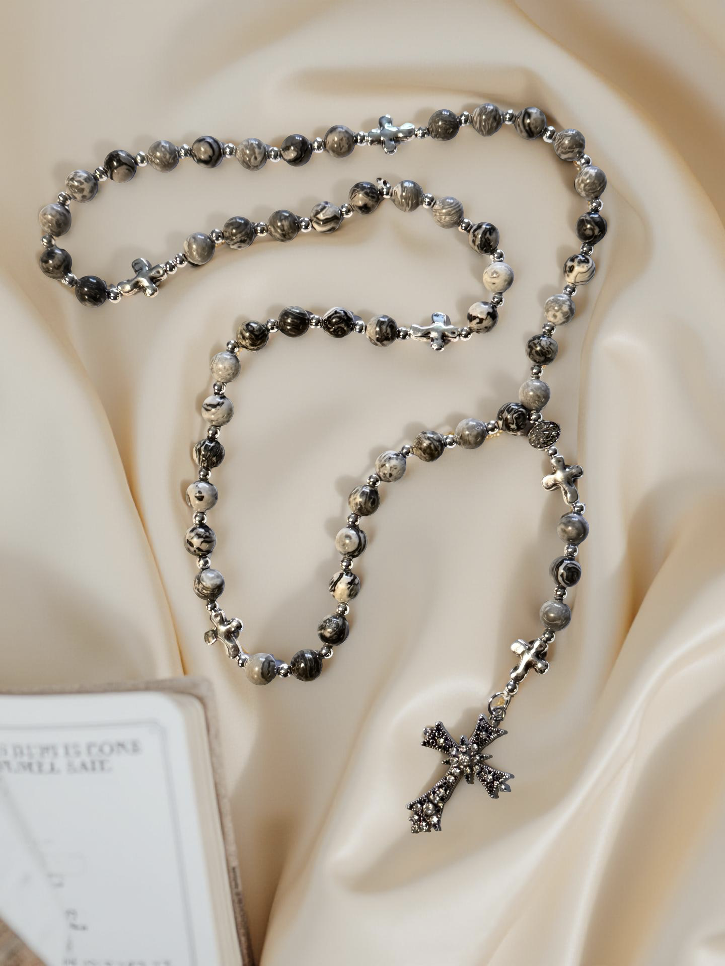 - Silver-tone cross Our Father beads for easy distinction