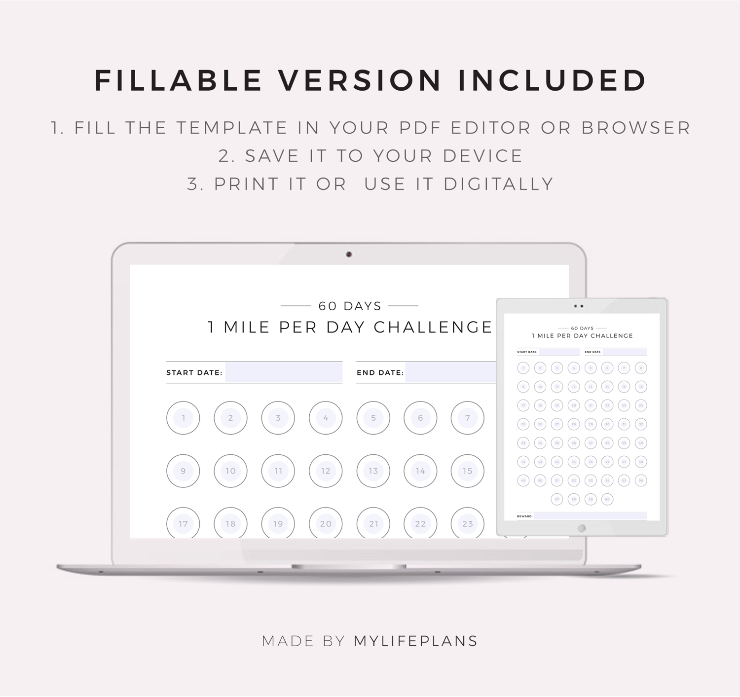 60 Day Running or Walking Challenge, Printable & Fillable Template, A4/Letter Size