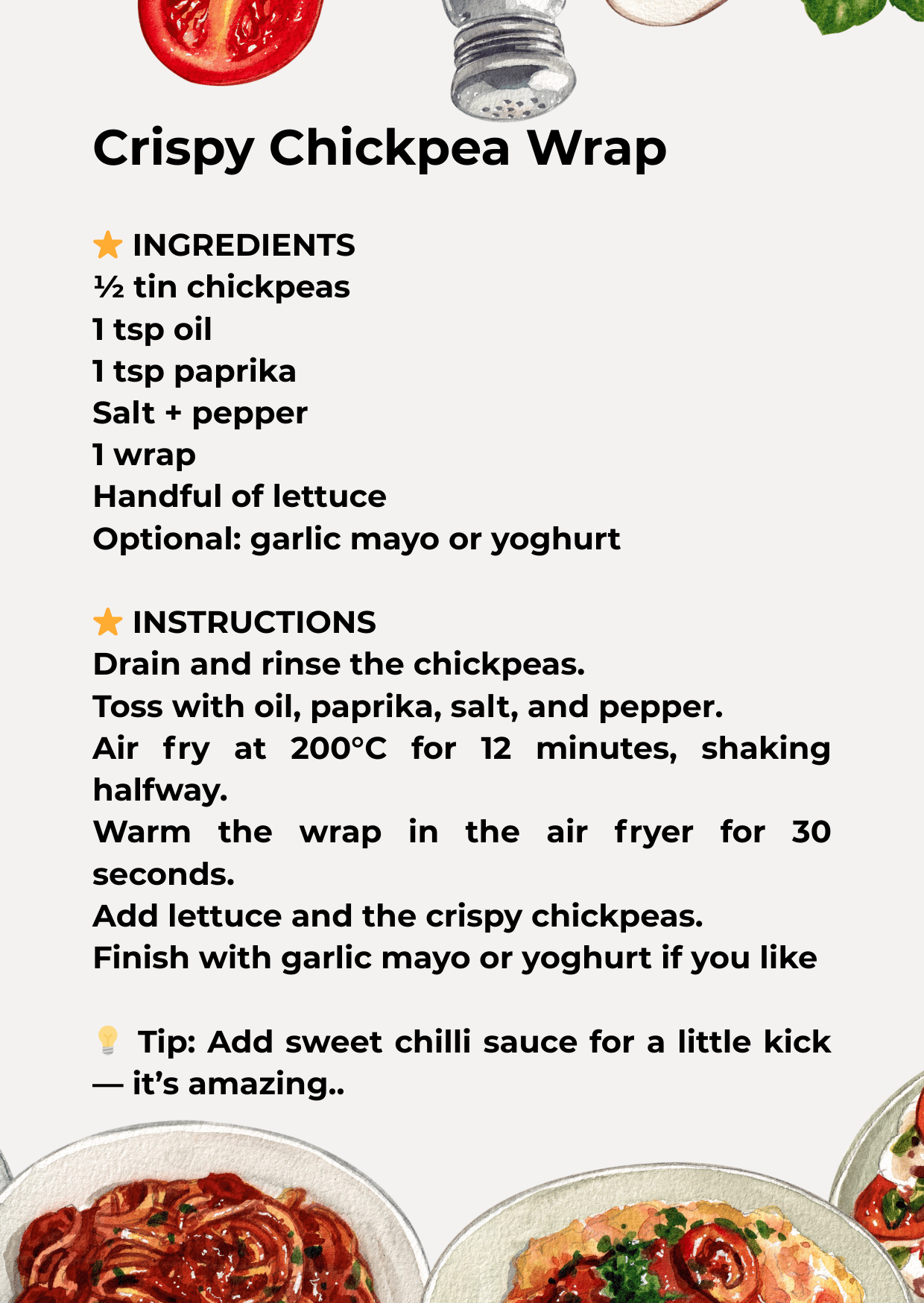 Crispy Chickpea Wrap — Printable Air Fryer Recipe Card (A6)
