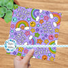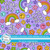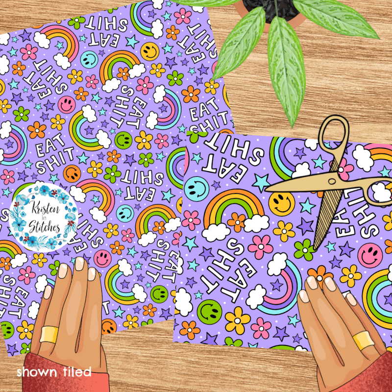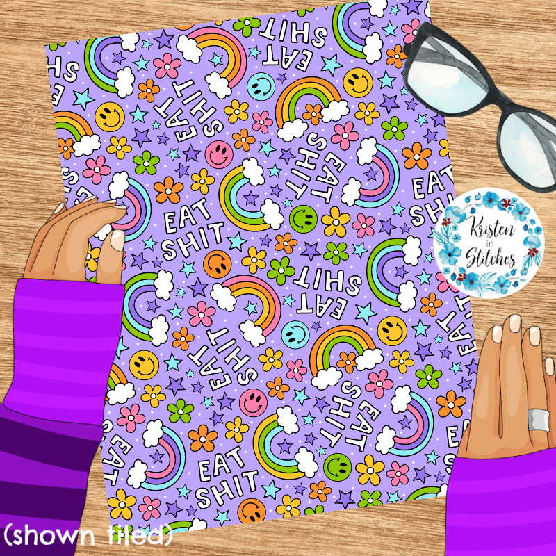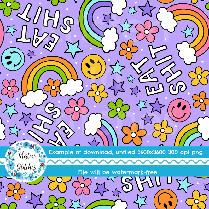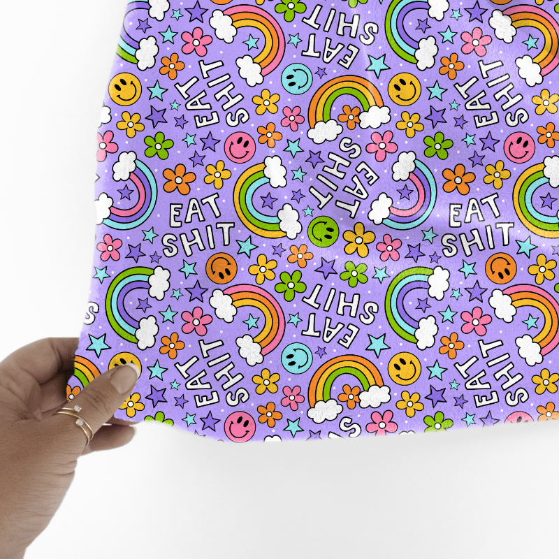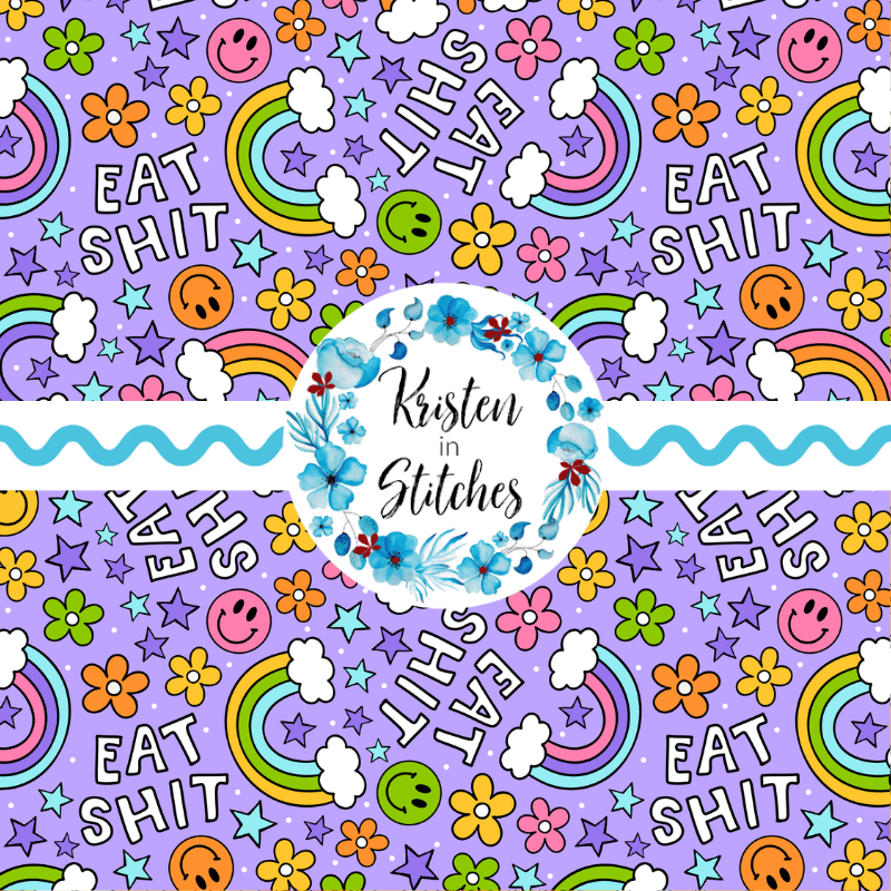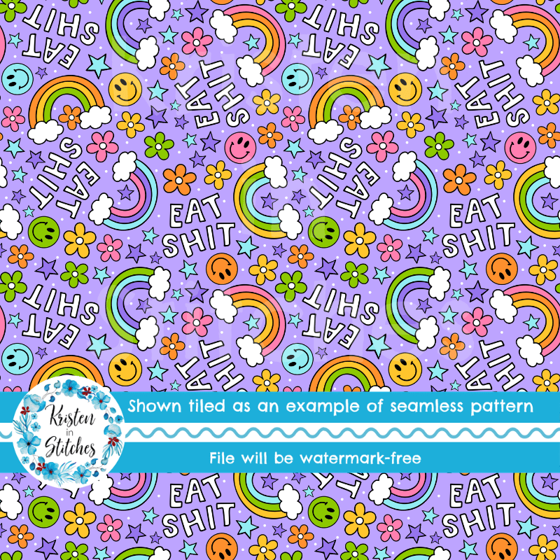 Eat Shit Sarcastic Sweary Seamless Pattern, Rainbows and Flowers, Purple