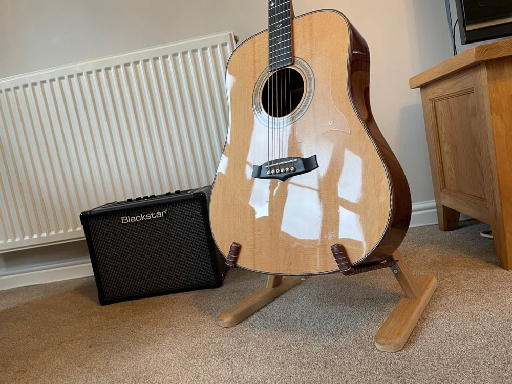 Solid oak handmade acoustic guitar stand.