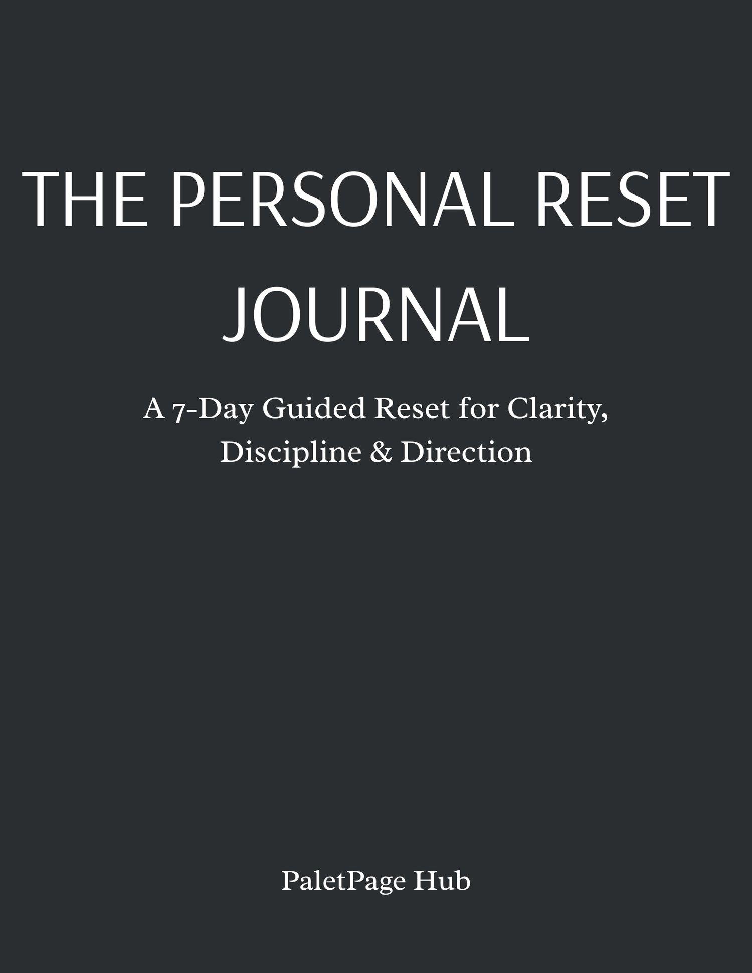The Personal Reset Journal is a short, guided 7-day journal created for people who feel mentally scattered, overwhelmed, or stuck in repetitive patterns. It is designed to be used slowly and intentionally, with pen and paper, away from distraction.