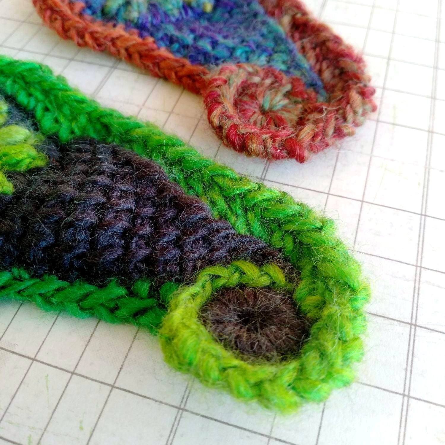 This paisley pattern is a good starting point for learning freeform crochet. Add and change individual stitches and new elements to express your creativity! In my finished products, I use paisley to make headbands. Expand your possibilities and make gloves, hats, scarves, pillows or jackets. Let your imagination go!