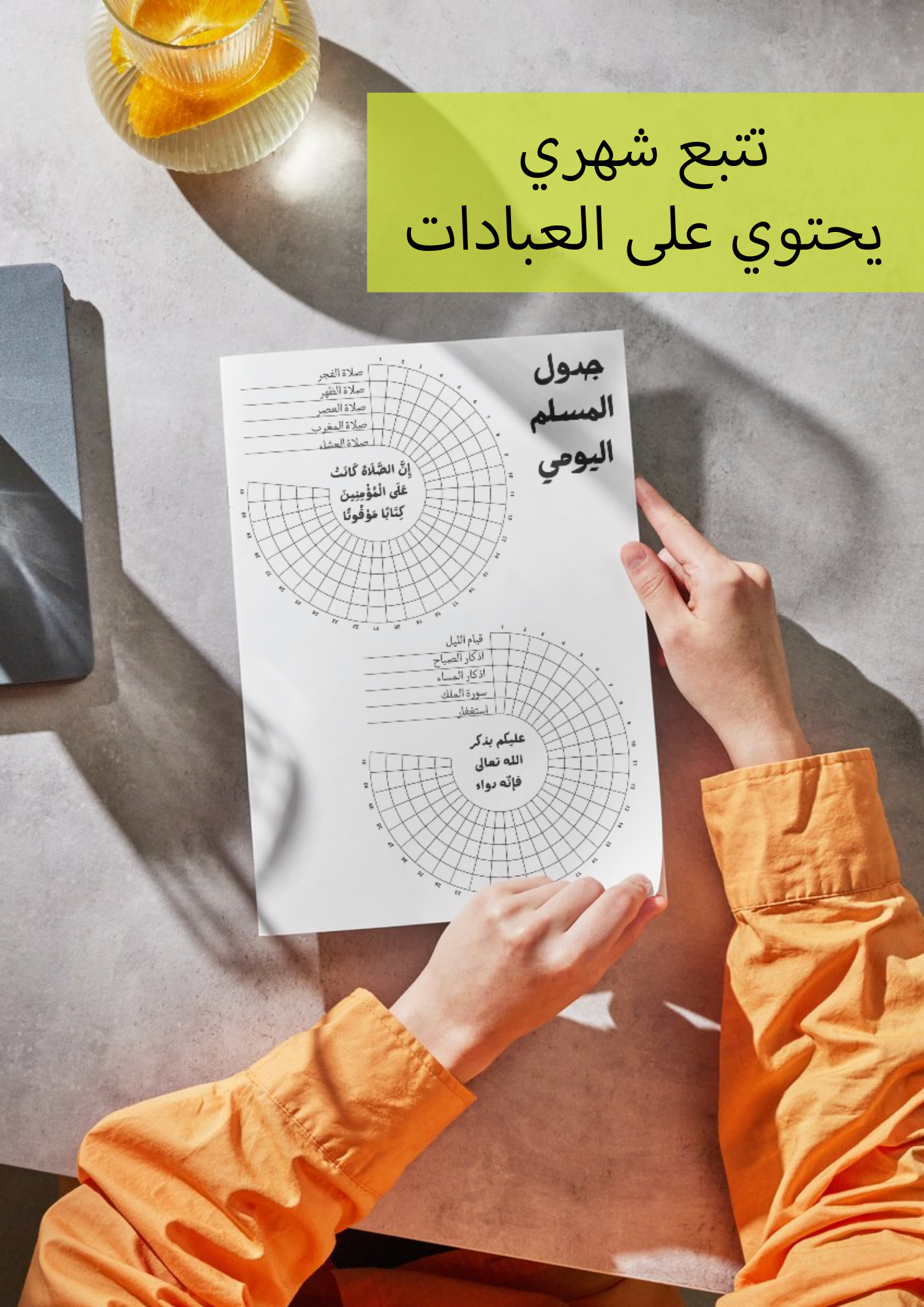 جدول شهري يحتوي على العبادات : يساعدك في تتبع عباداتك اليومية وأهدافك الشهرية