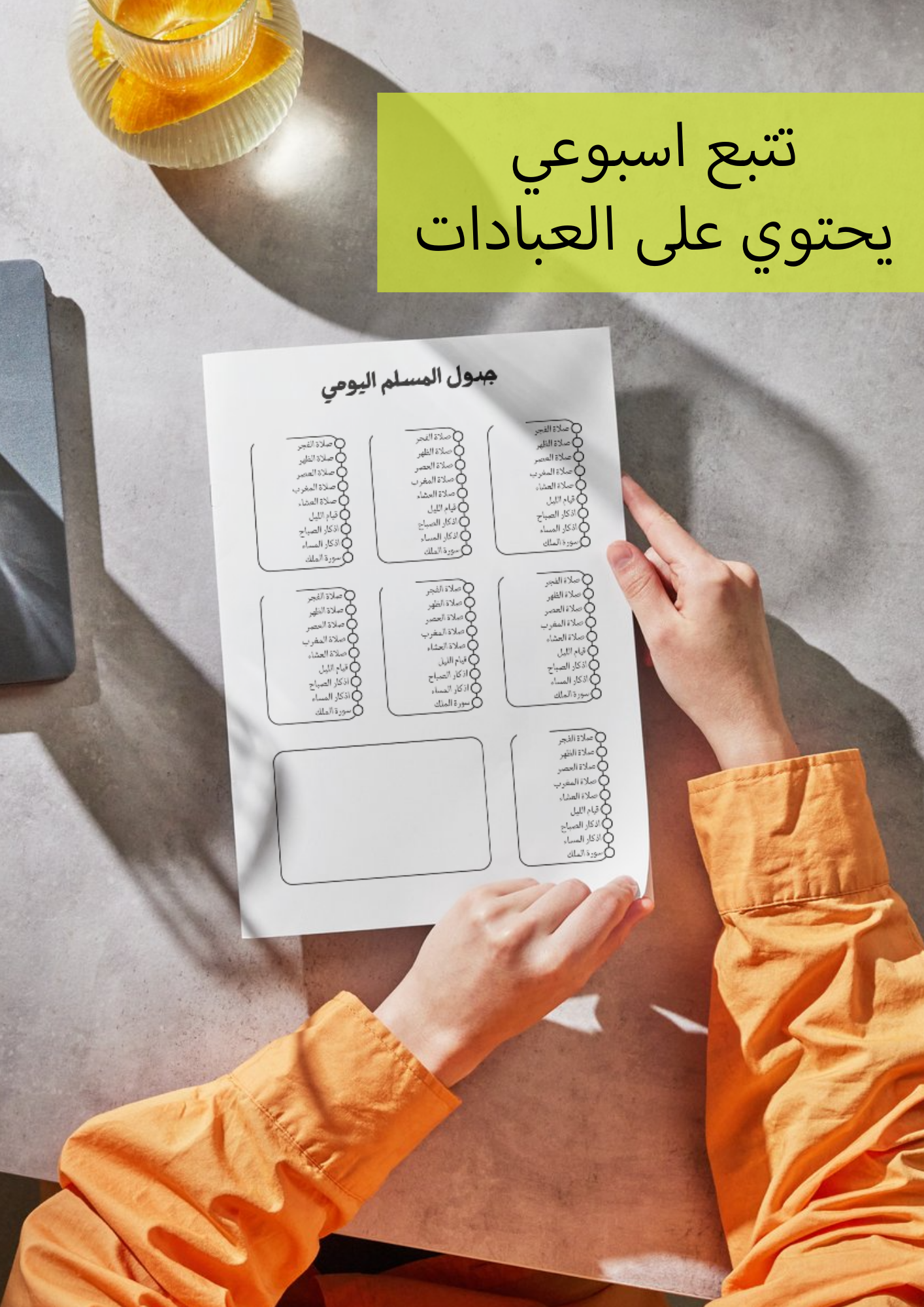 جدول أسبوعي يحتوي على العبادات : يساعدك على التخطيط التفصيلي للعبادات بشكل اسبوعي