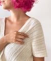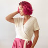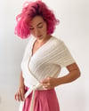 Delicate and comforting, just like a sincere hug, this heartwarmer is a lovely addition to in-between season wardrobes. It can be worn on its own as a top or layered over dresses, t-shirts and camisoles as a light cardigan.