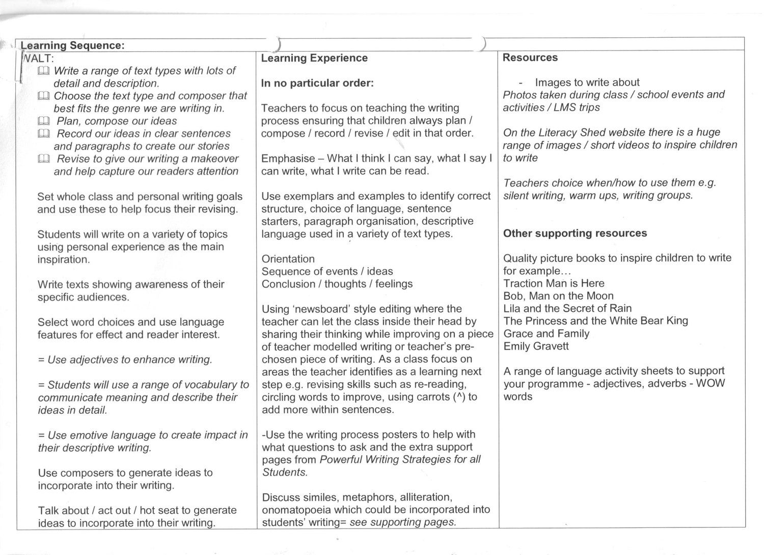 Model examples, planning templates and unit plans and ideas for teaching Recount writing - Level 2/3