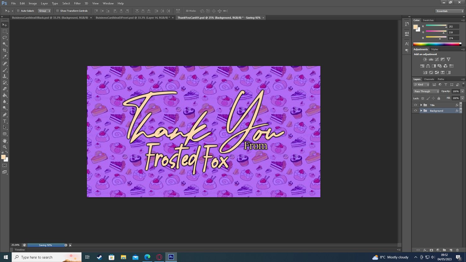 Frosted Fox Thank You Card Design #01, 4K Digital File comes in Photoshop file form; so you can customise this design as you wish. Been a great pleasure to work for this company and create some of its newest content. Perfect for any sweets or desert company as I used a cake themed background for this product.