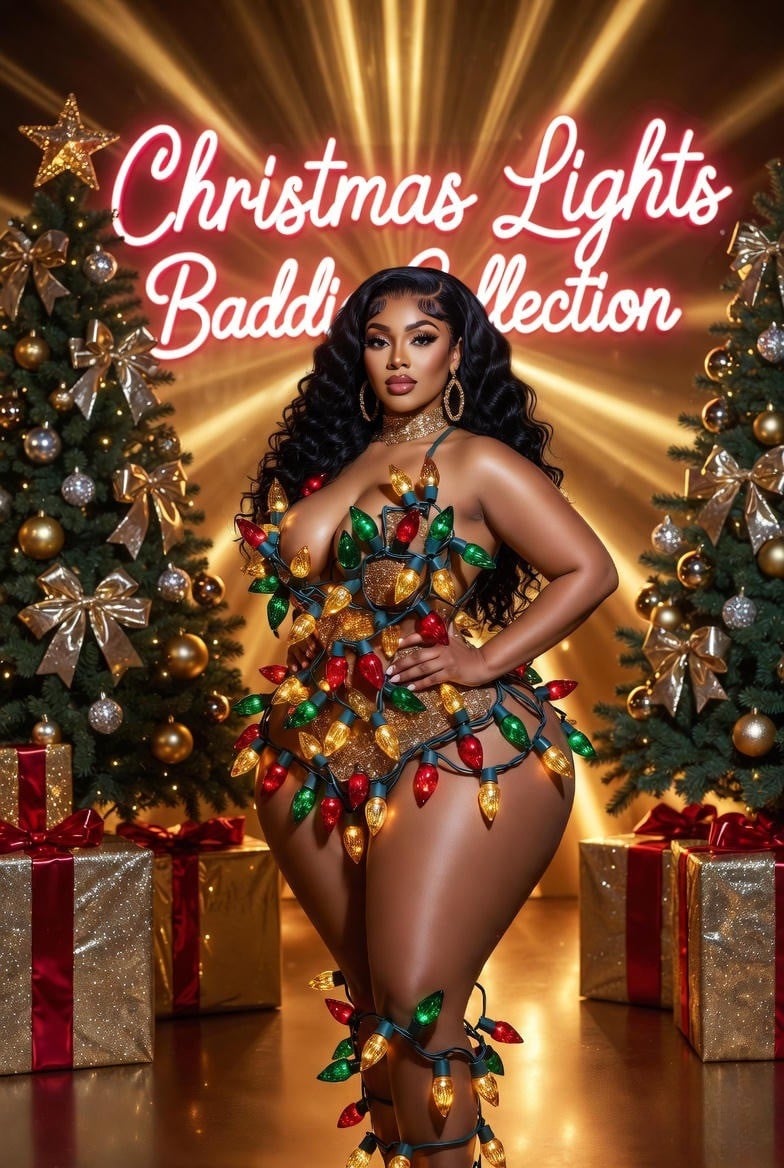 Each prompt features ultra-curvy thick Black baddies dripping in Christmas lights, jeweled ornaments, and cinematic 8K glow. These aren’t your average holiday looks — they’re show-stopping, mood-setting, high-fashion scenes built for true seasonal slay.