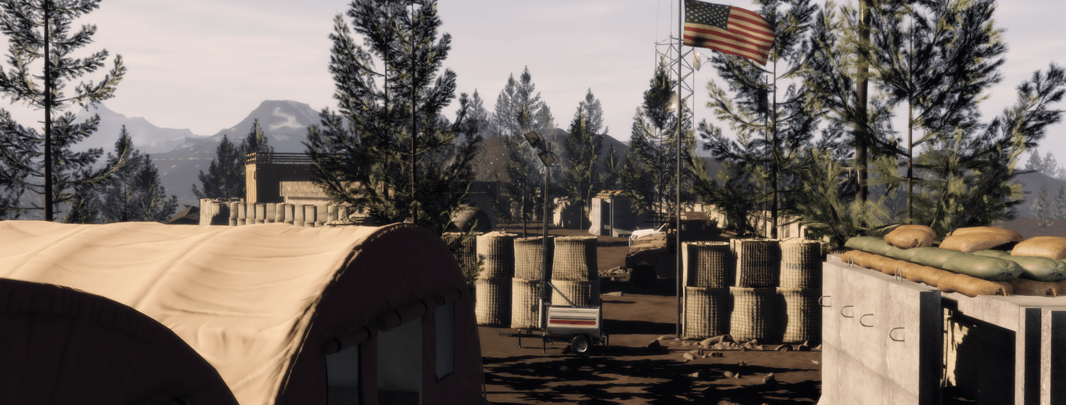As the altitude climbs, the map is split into three regions with varying environments. Ranging from pine forest, to snow capped mountains. Towns and Airfields are located on steep cliffs, connected by rope bridges, providing a vertical combat environment. Ideal for combat, deployment or exploration.
