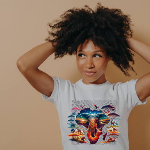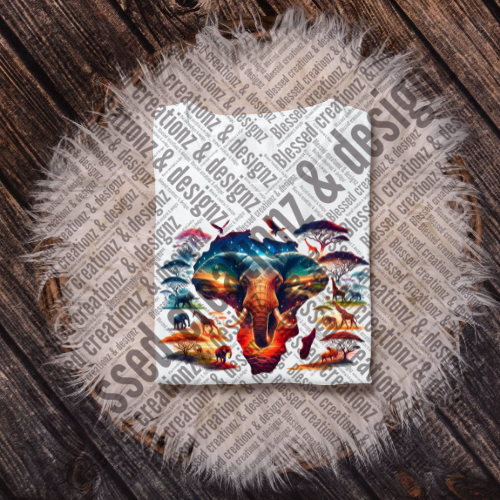 A vibrant Digital download png of Africa in the silhouette of an elephant.