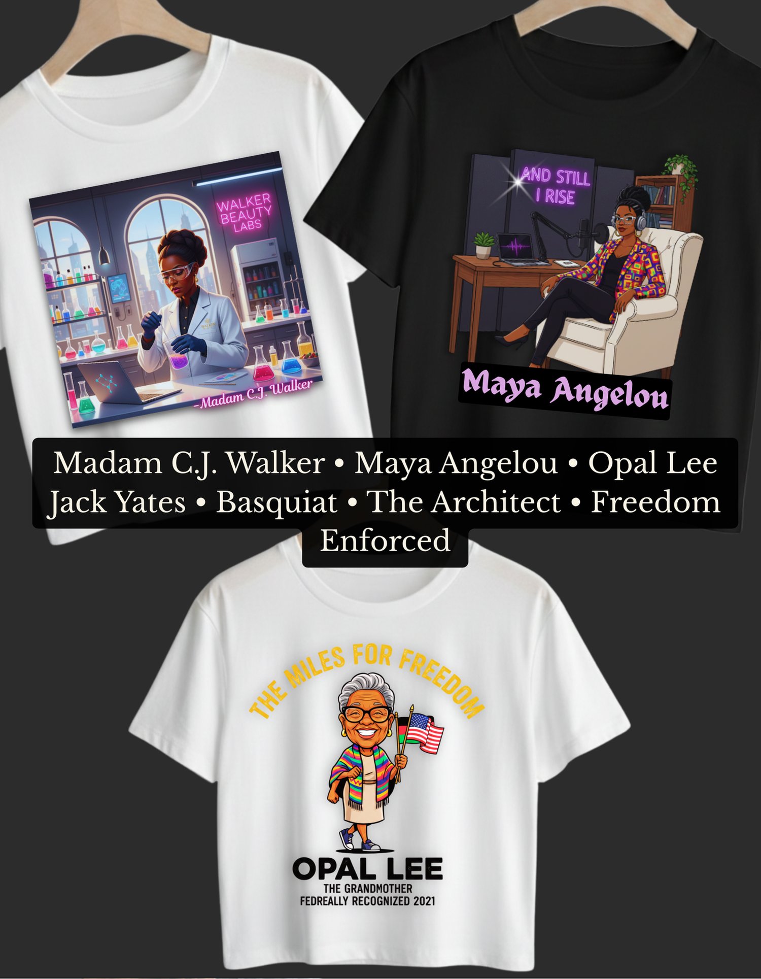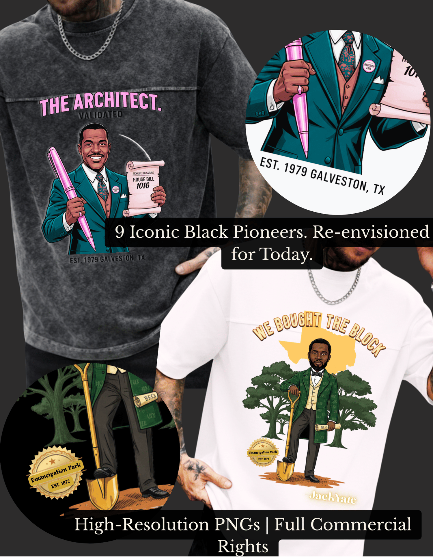 History meets the Modern Era. This exclusive "Millennial Pioneer" bundle features 9 powerful, high-resolution PNG images that reimagine iconic Black figures as contemporary leaders. From Madam C.J. Walker in a high-tech beauty lab to Nina Simone and James Baldwin in modern settings, these designs bridge the gap between historical legacy and current culture.