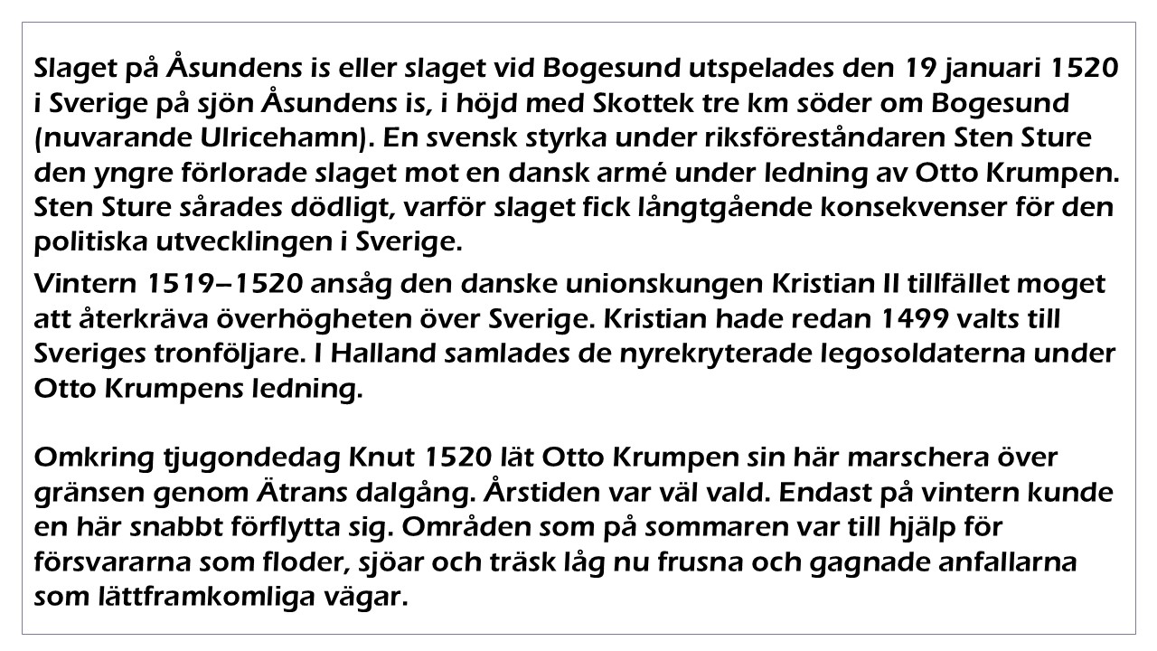 Quiz på slaget på Åsundens is. Historia om händelsen och även om Stockholms blodbad. I ett annat bildspel och annan frågesport finns fler frågor om själva Blodbadet, så se nära denna post så hittas den andra lätt.