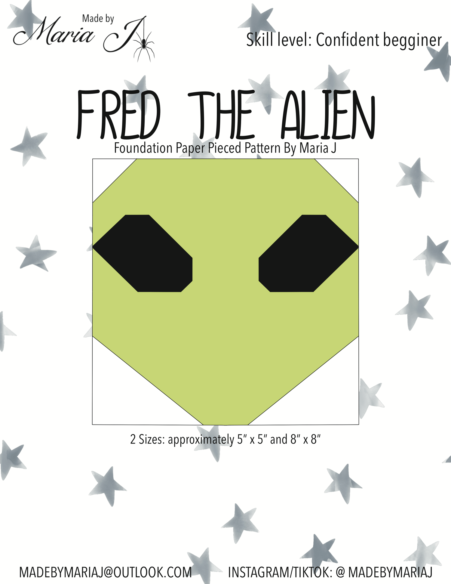 This super cute alien foundation paper piece pattern Comes with two sizes!
