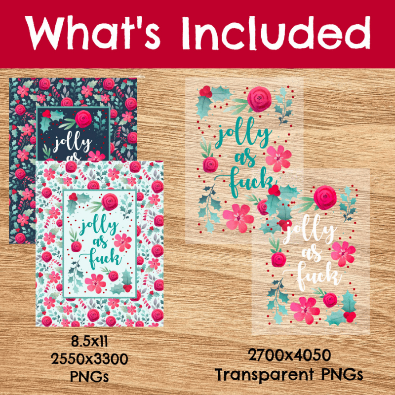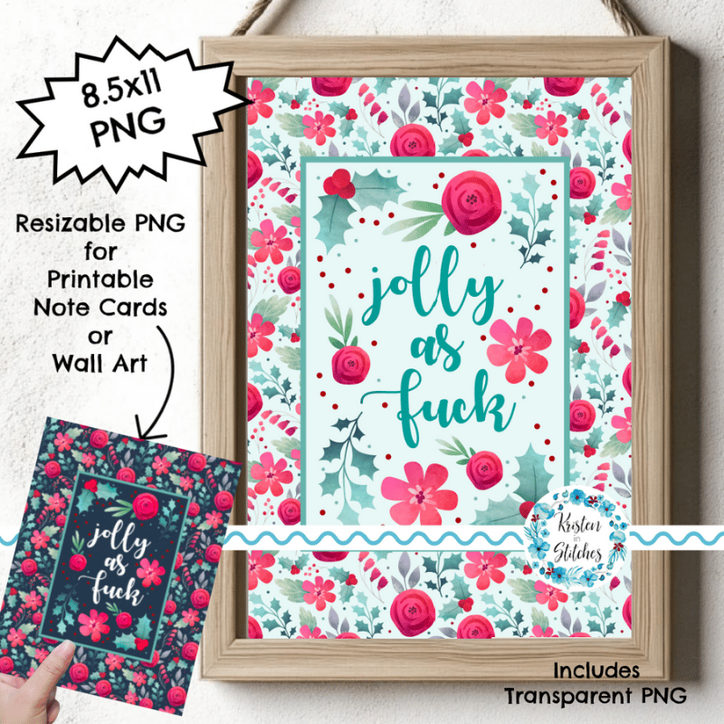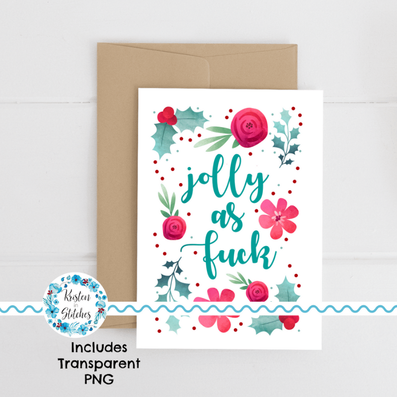 Printable Cards and Wall Art, PNG Transparent Graphics, Jolly as Fuck, Naughty Christmas, Sarcastic Santa