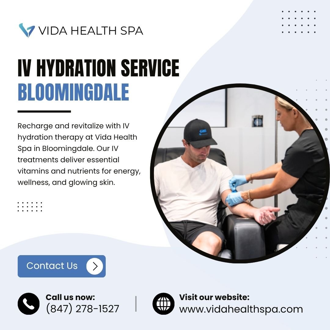 Recharge and revitalize with IV hydration therapy at Vida Health Spa in Bloomingdale. Our IV treatments deliver essential vitamins and nutrients for energy, wellness, and glowing skin. Experience instant rejuvenation in a relaxing spa setting. Book your session today at VidaHealthSpa.com.