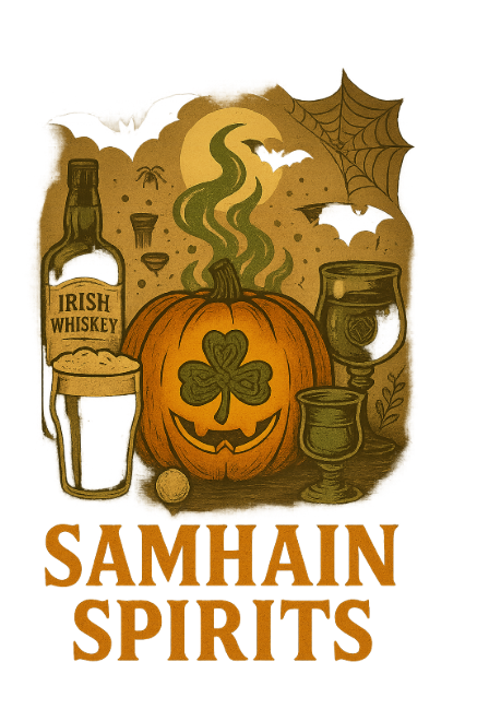 ✨ Samhain Spirits PNG | Irish Halloween Whiskey & Shamrock Design | Celtic Festival Sublimation Art