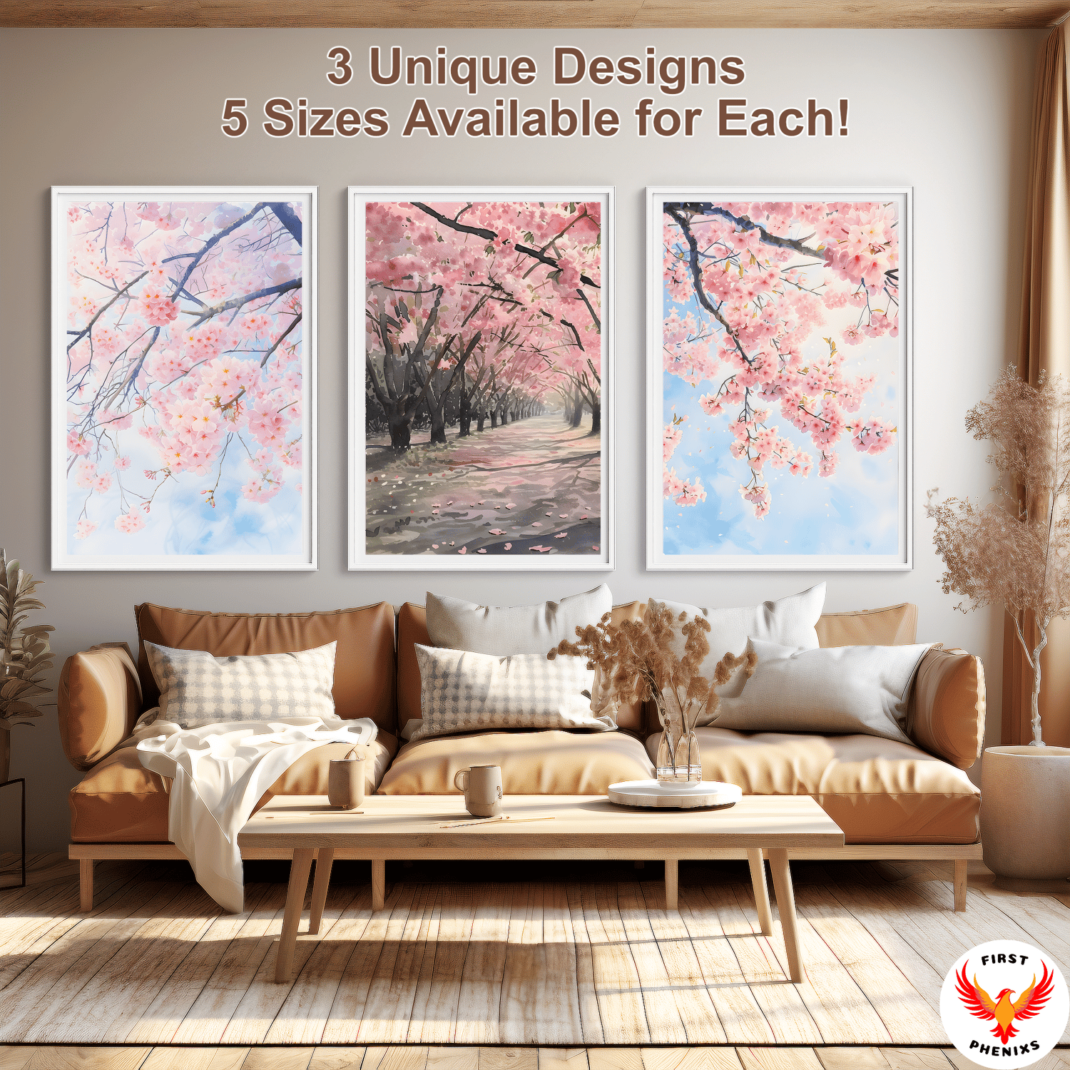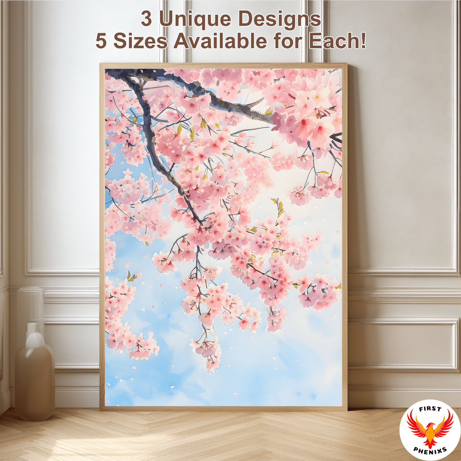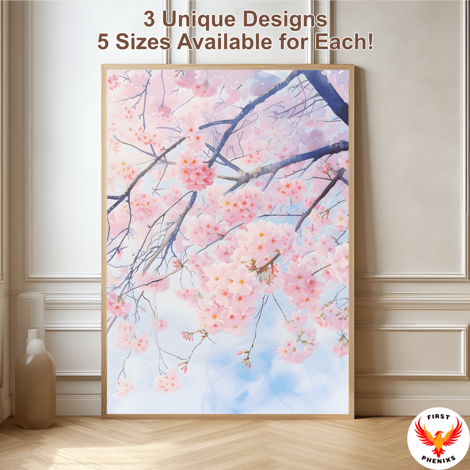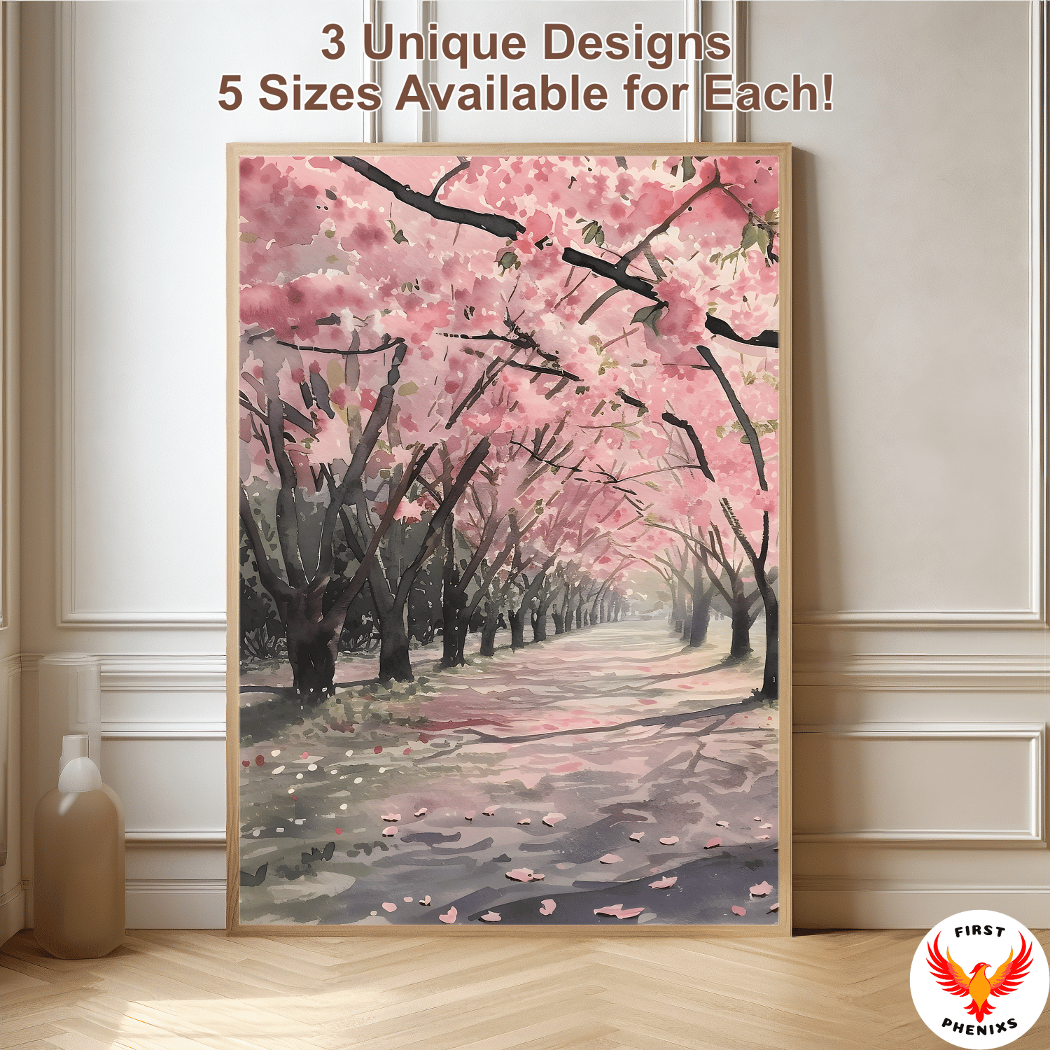 seasonal Wall Art Set, Serene spring Nature Prints, Sakura Watercolor Decor, Pink Flower Japanese Art set, Peaceful Cherry Blossom Posters