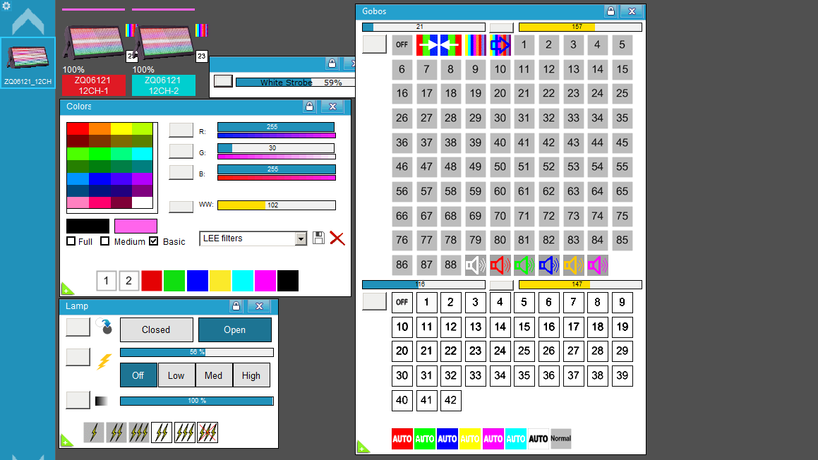 Librería para Freestyler DMX del Flash "ZQ06121" de Uking ( 4-6-12-144-154CH Strobe 768 Led ).