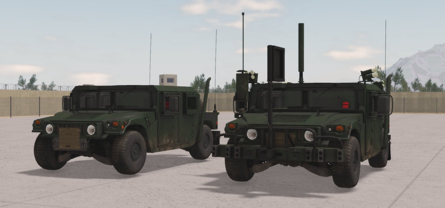 - Variants: Multiple unarmed Humvee body types (cargo, troop carrier, recon)