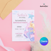 Mermaid theme birthday invitation Card Editable Printable with Canva Design