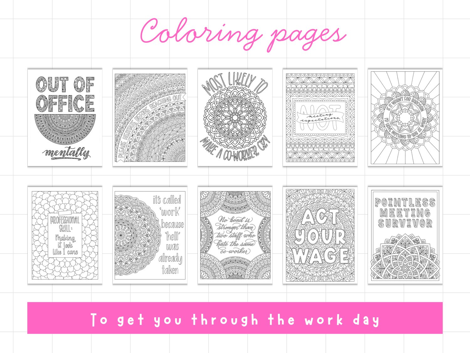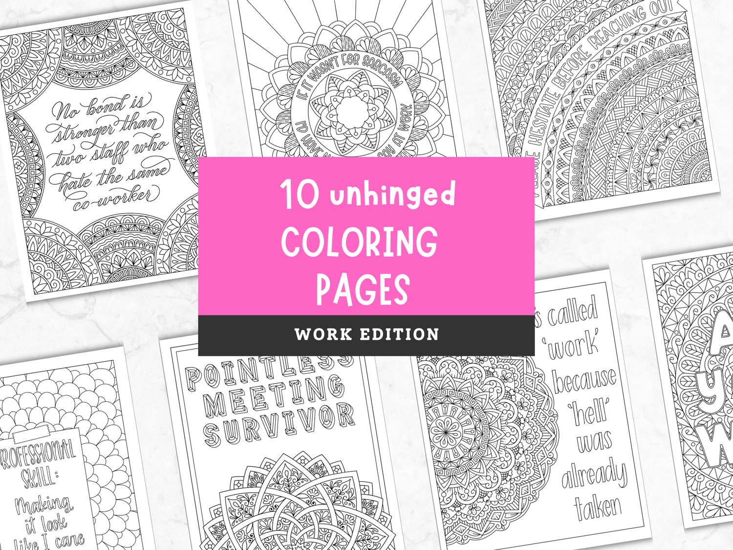 10 Snarky Office-Themed Adult Coloring (PDF + JPEG + PNG)