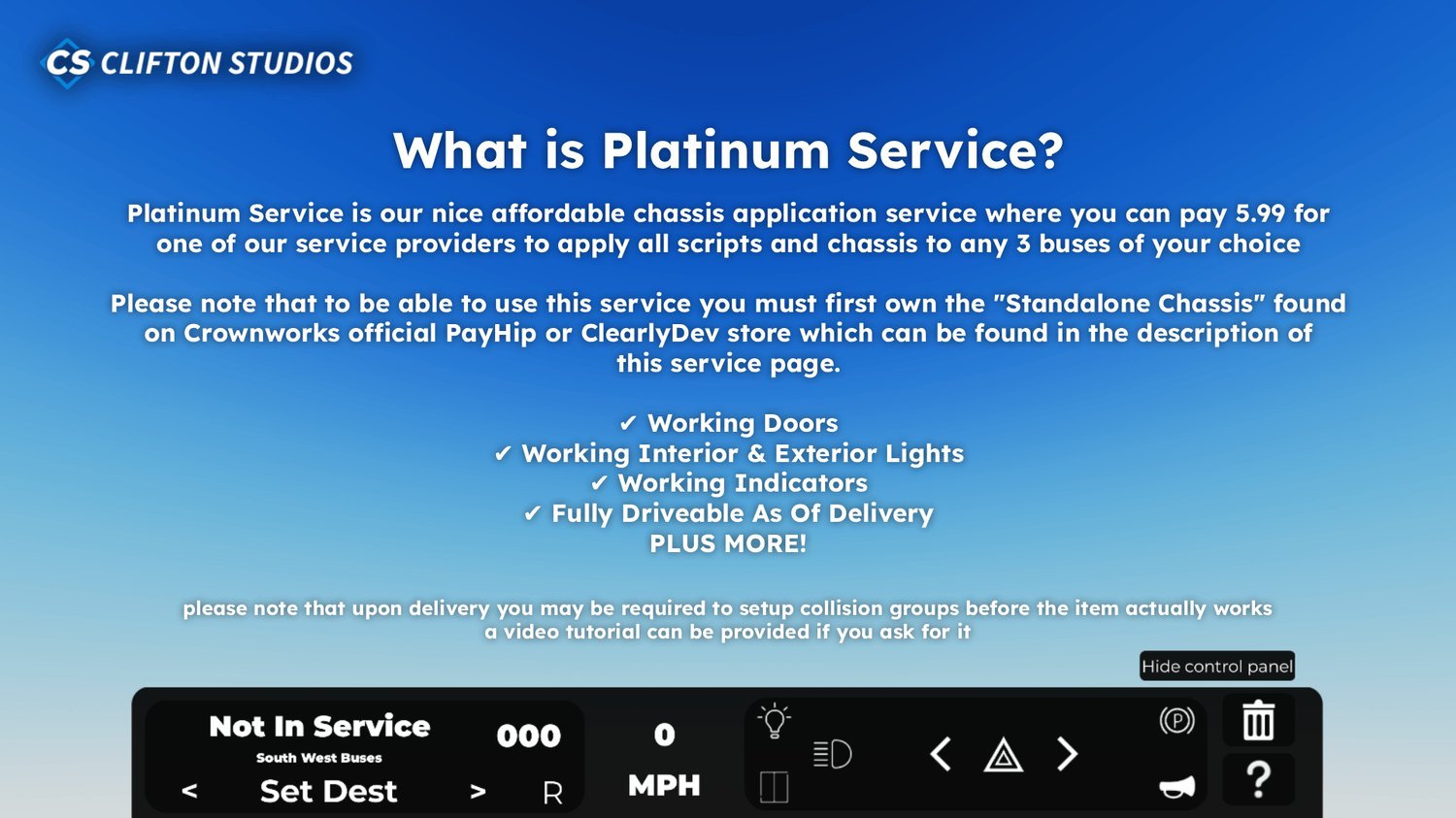 Our Platinum Service is designed for standalone chassis holders who want their chassis applied to a bus model of their choice. To qualify, you must provide proof of ownership for the selected bus model—without it, we cannot proceed, and no refunds will be issued.
