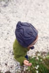 Fauna is a knitted pixie hat, worked flat. The pattern is written in 3 sizes: