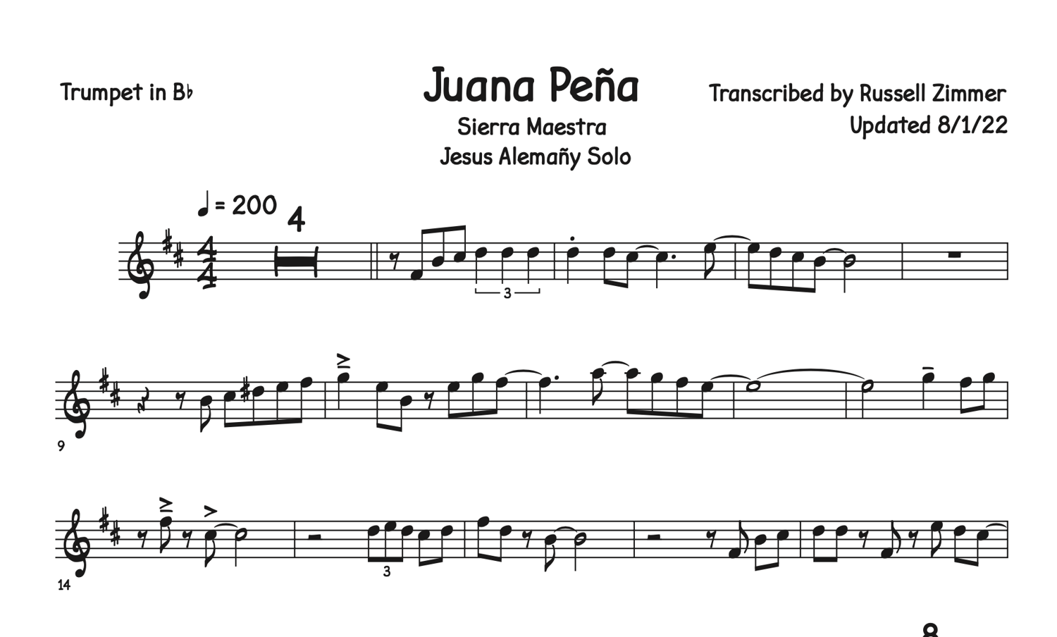 Jesus Alemany trumpet parts and solo on Sierra Maestro's "Juana Pena" from Dundunbanza 1994.
