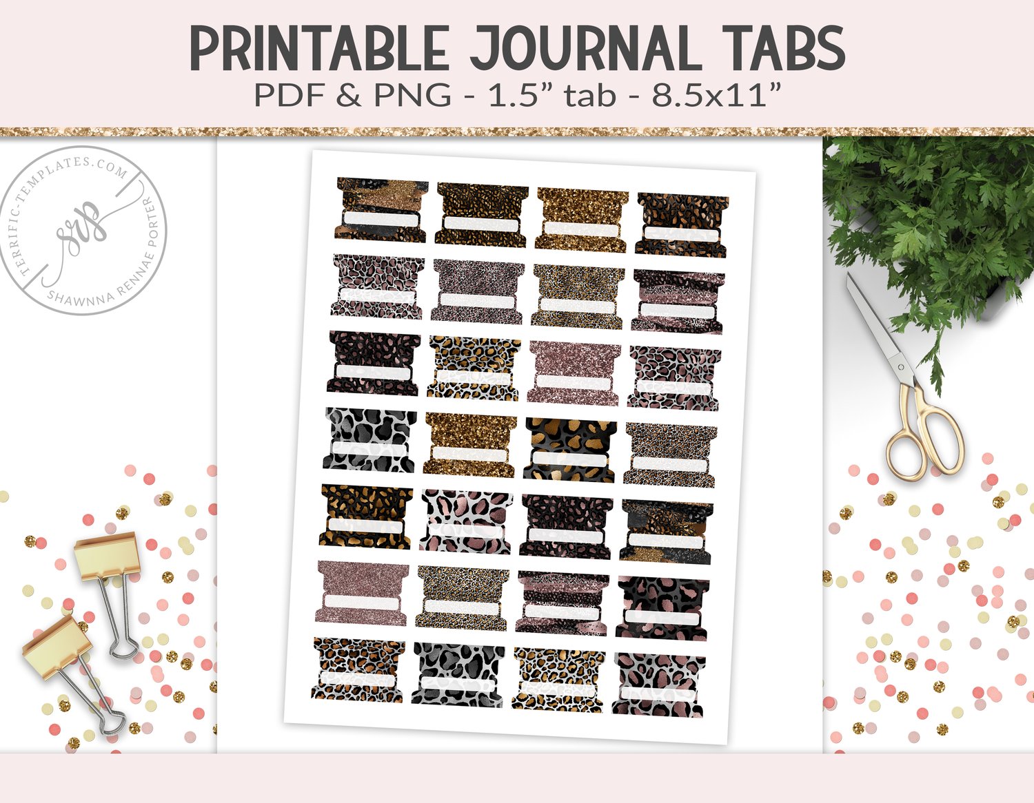 Printable fold over page tabs, PDF & PNG (PR01)