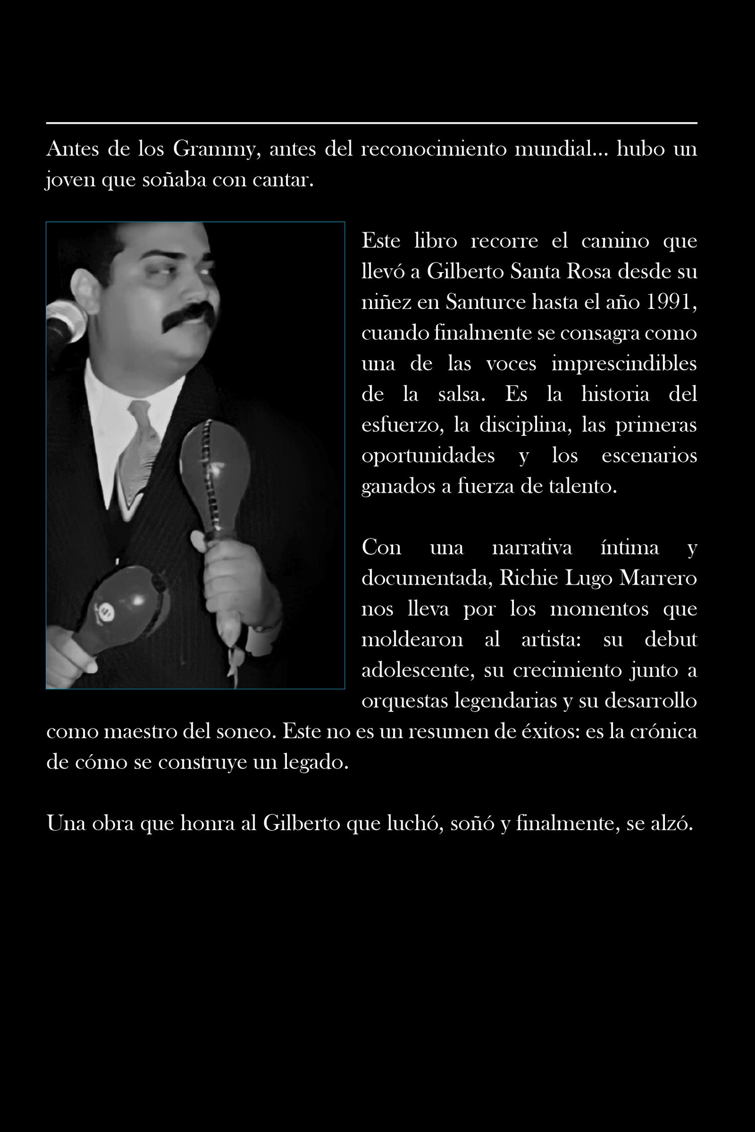 Este libro recorre la historia de Gilberto Santa Rosa desde sus inicios en 1974 hasta su consagración como ícono del género. A través de un enfoque crítico, íntimo y respetuoso, la obra examina su impacto cultural y musical con mirada histórica.