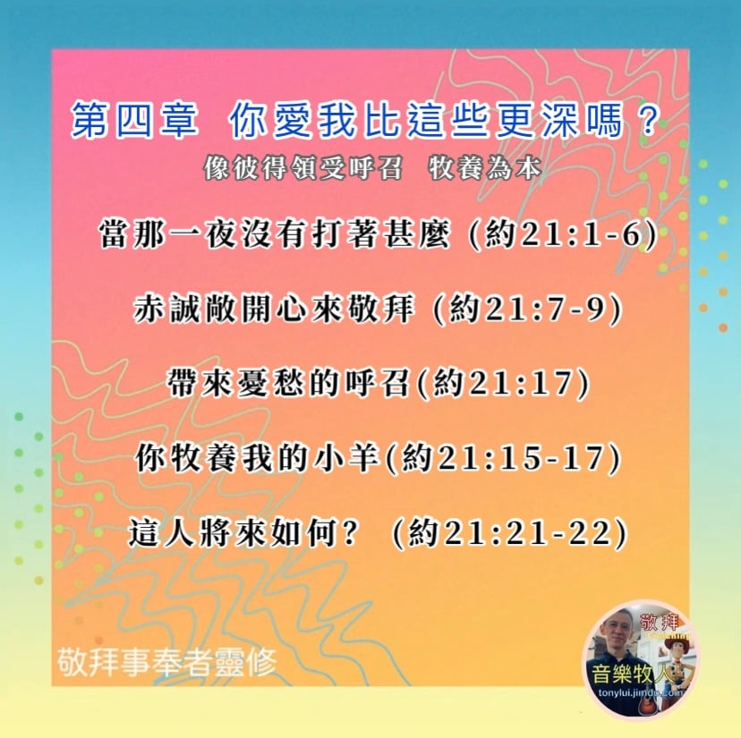 4)你愛我比這些更深嗎? (約翰福音第21章) 5