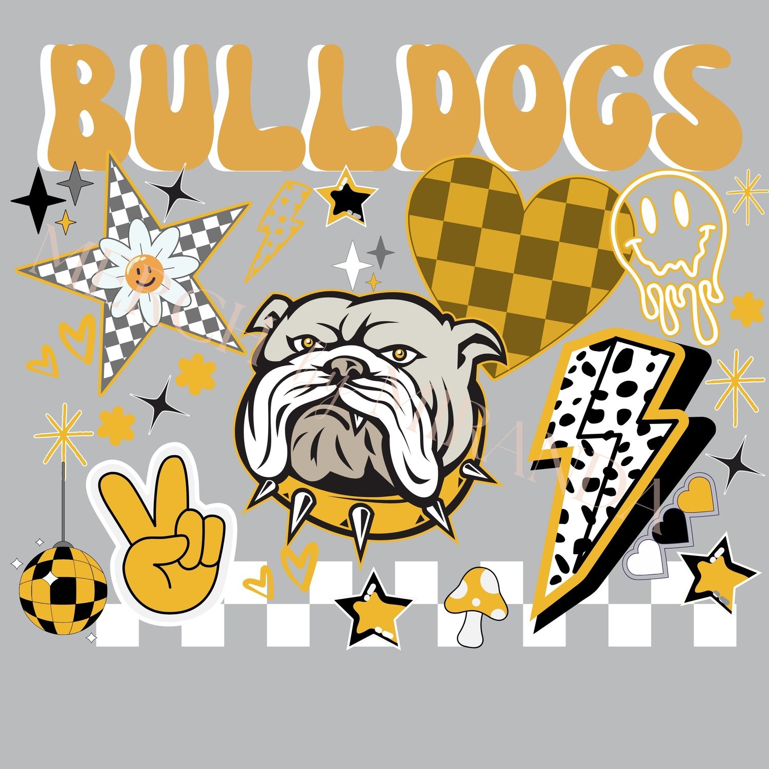 Bulldog Mascot - Bulldogs - Retro Groovy Theme - School Spirit - Digital Download