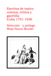 Desde El Viajero, seudónimo de un autor en el Papel Periódico de La Havana en 1791 a otro con el sobrenombre de Garrick en la revista Social de 1936, Escritos de teatro: crónica, crítica y gacetilla, recoge casi un centenar de textos, tomados de fuentes varias, la mayoría, de recopilaciones y libros y las menos, de periódicos y revistas. Aparecen desde los muchos autores anónimos que escribieron con un alias, hasta las grandes figuras de la crónica y la crítica –Julián del Casal y José Martí– ; los que tuvieron por la escena una devoción más que probada, como Buenaventura Pascual Ferrer o Aniceto Valdivia; los eruditos, Mitjans, Piñeyro, Justo de Lara y Enrique José Varona, cuya reflexión es más que imprescindible, pero también los desconocidos. También se incluye el aviso, la nota de ocasión, la proclama, la gacetilla, la crónica de viaje, la ordenanza y la censura ácida o biliosa. Tampoco falta la reflexión amarga sobre la censura misma y la labor del crítico teatral. La selección de 464 páginas no es exhaustiva ni representativa salvo del deseo de recomponer los fragmentos del pasado como una vasija rota.