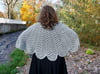Fly towards the sky with this elegant capelet or shawl made up of lacy, airy feathers. Use a light cotton yarn for a summery capelet for a renaissance faire, a lacy yarn for a wedding accessory or a thicker, warmer yarn for a fun, witchy accessory in autumn and spring.