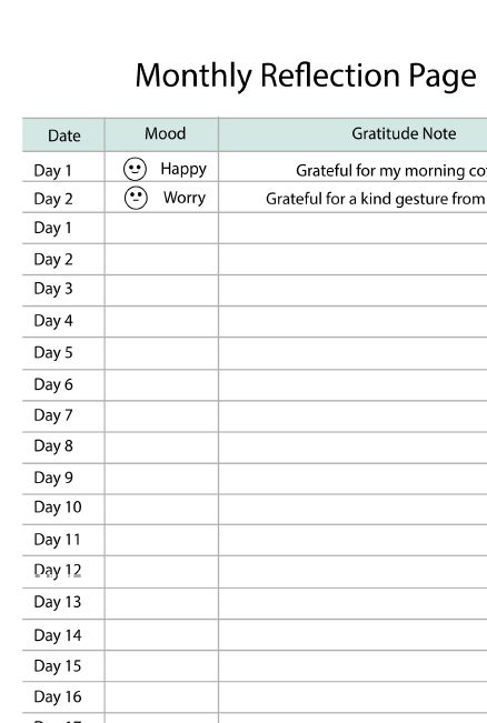 At the end of each month, there is a Monthly Reflection Page.