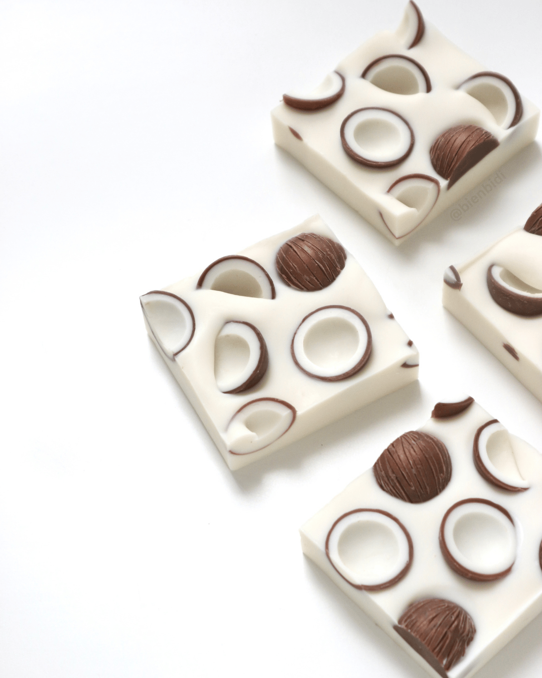 Learn how to create a coconut-inspired embed soap using the cold process method. In this tutorial, you’ll see the full process from making the embeds from scratch to assembling the final design.