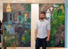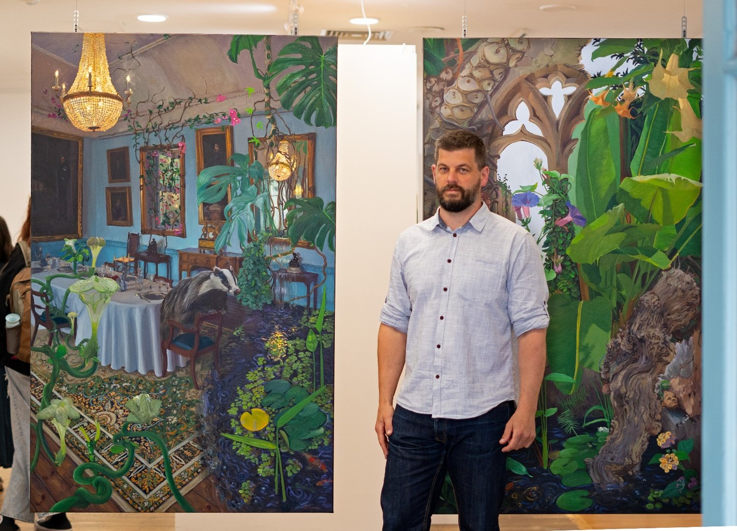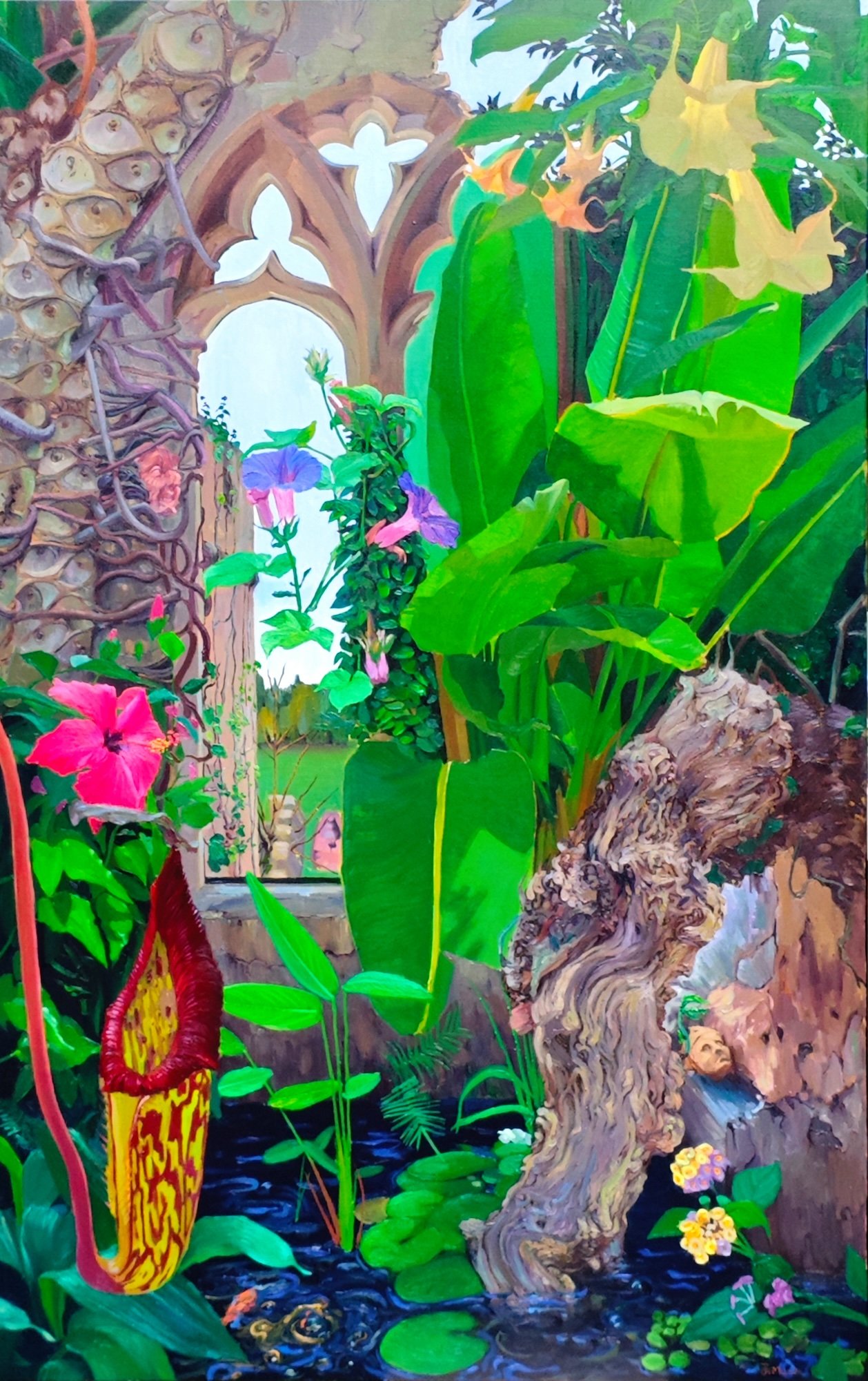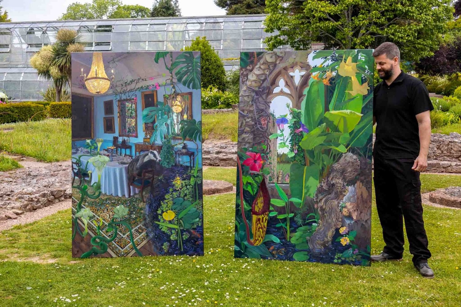 Painted at the conclusion of the artist’s residency at Torre Abbey, a former Premonstratensian monastery in Torquay, Manifestation merges natural forms with the Abbey’s historic interior. The work forms one half of a diptych alongside Foretelling, exploring the dialogue between architecture, restoration, and the natural world.