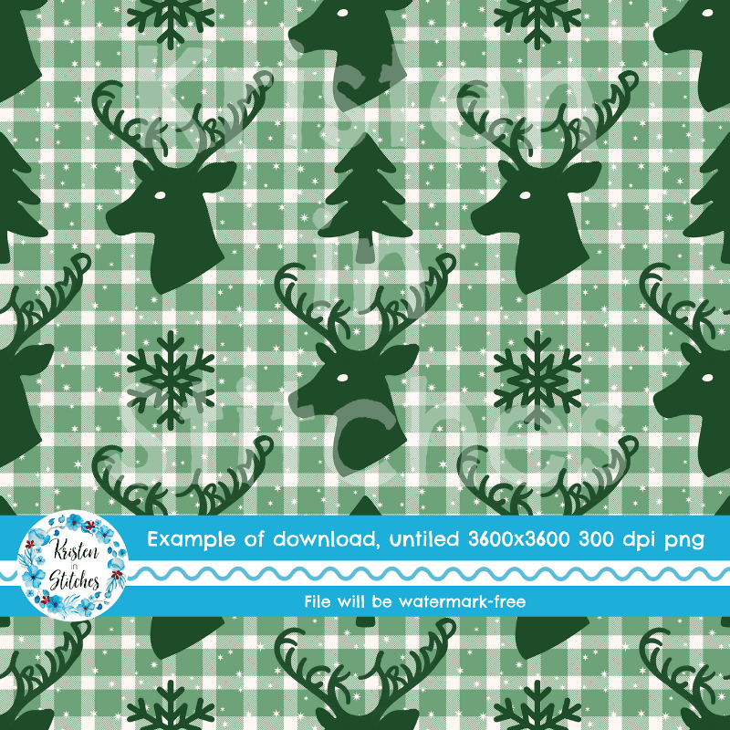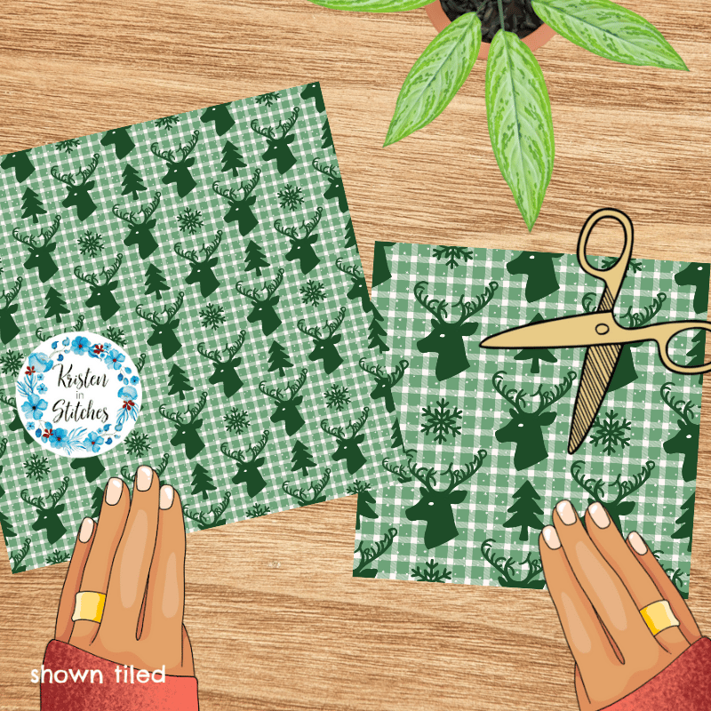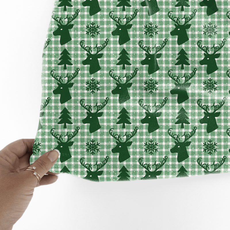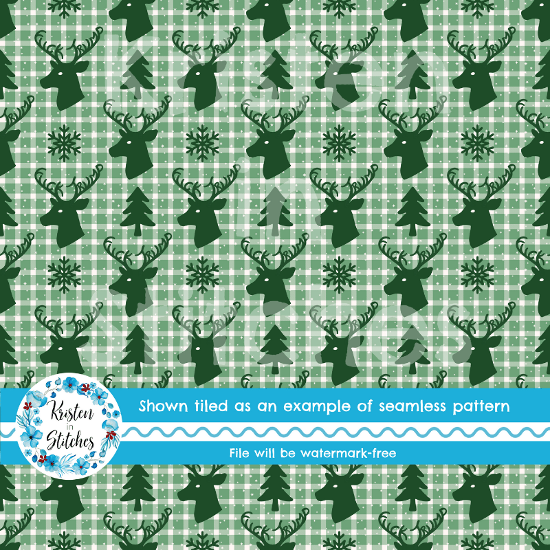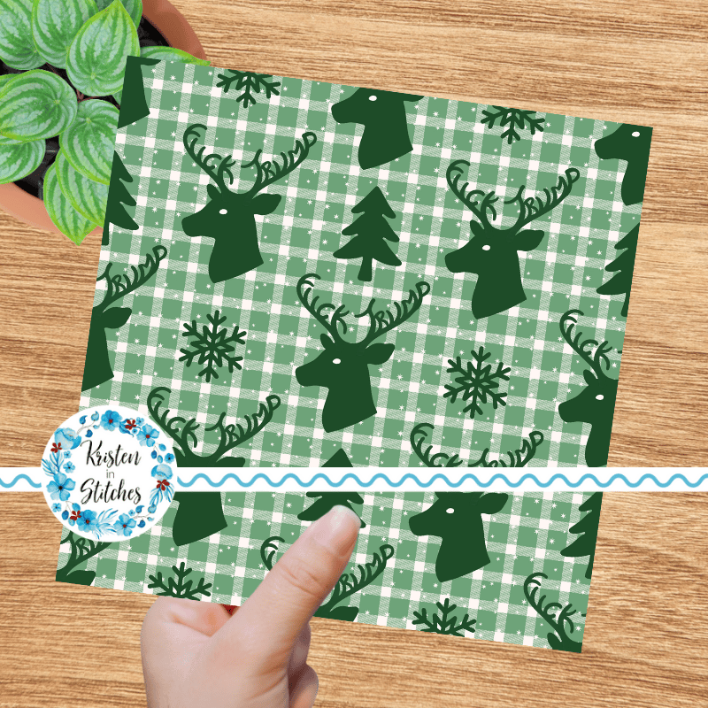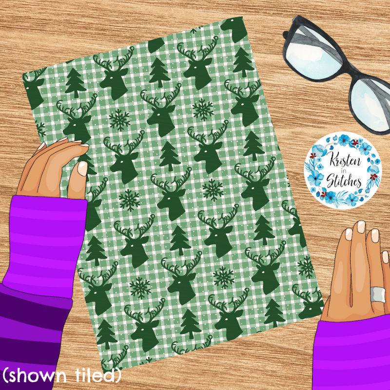 Subtle Fuck Trump Winter Holiday Plaid Sarcastic FDT Seamless Pattern, Christmas Reindeer Deer Antlers Green