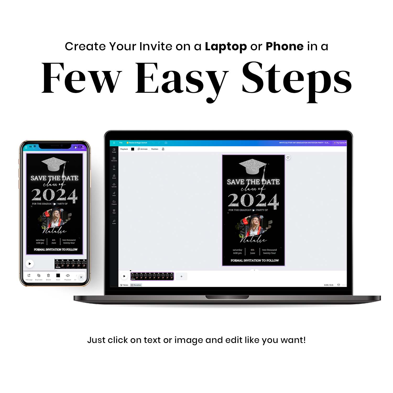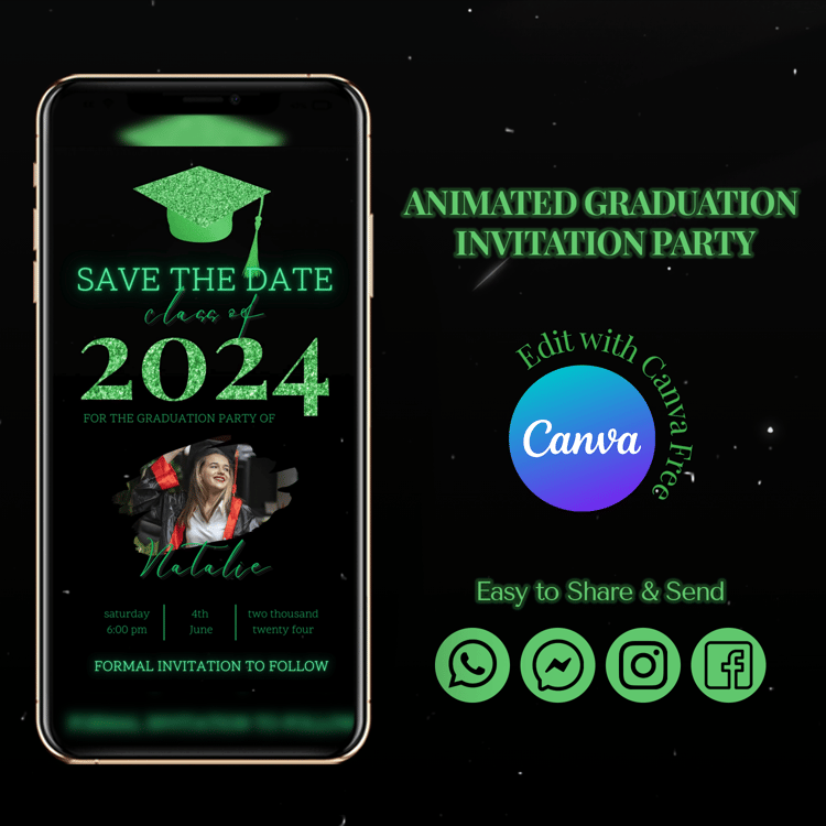 Invite your guests to your graduation event with a unique and modern touch using this special animated graduation party invitation templates. With the convenience of a video text message, it’s quick and easy to send. This template provides instant access without any need for installation.