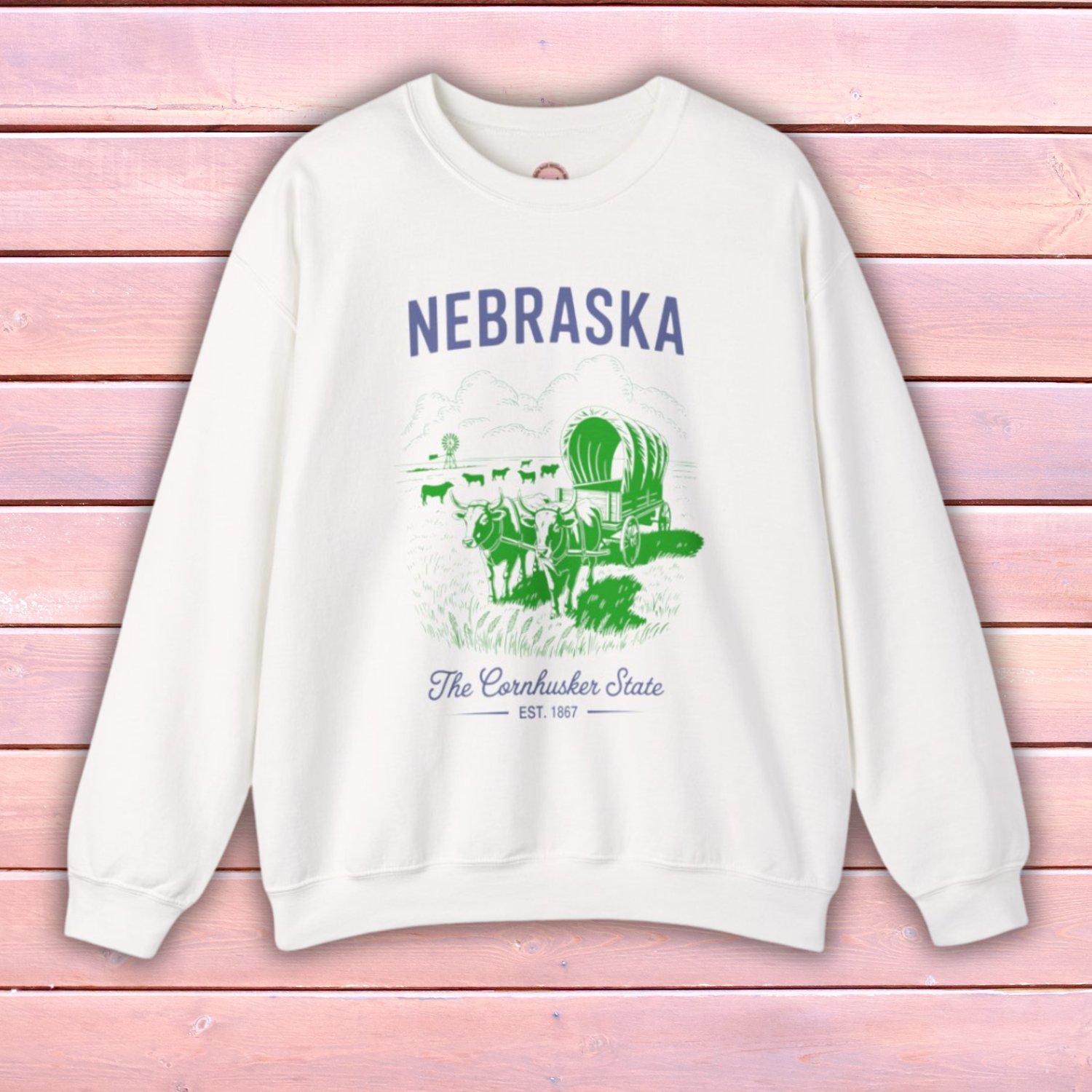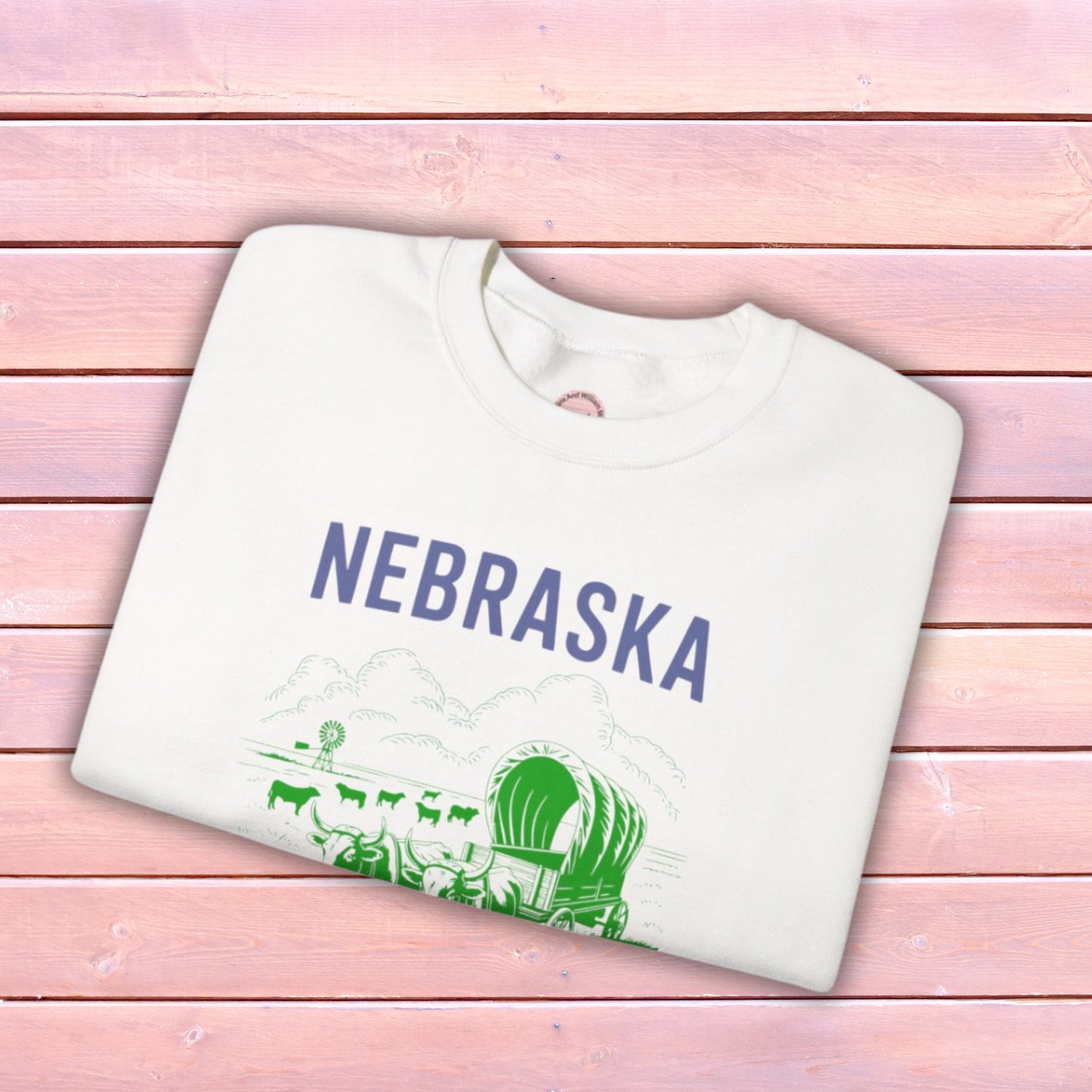 Nebraska State Pride Unisex Crewneck Sweatshirt – Cozy Vintage-Style Gift for Cornhuskers, Midwest Cold Weather Apparel
