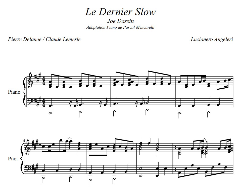 Joe Dassin - le Dernier Slow - Partition Piano Solo
